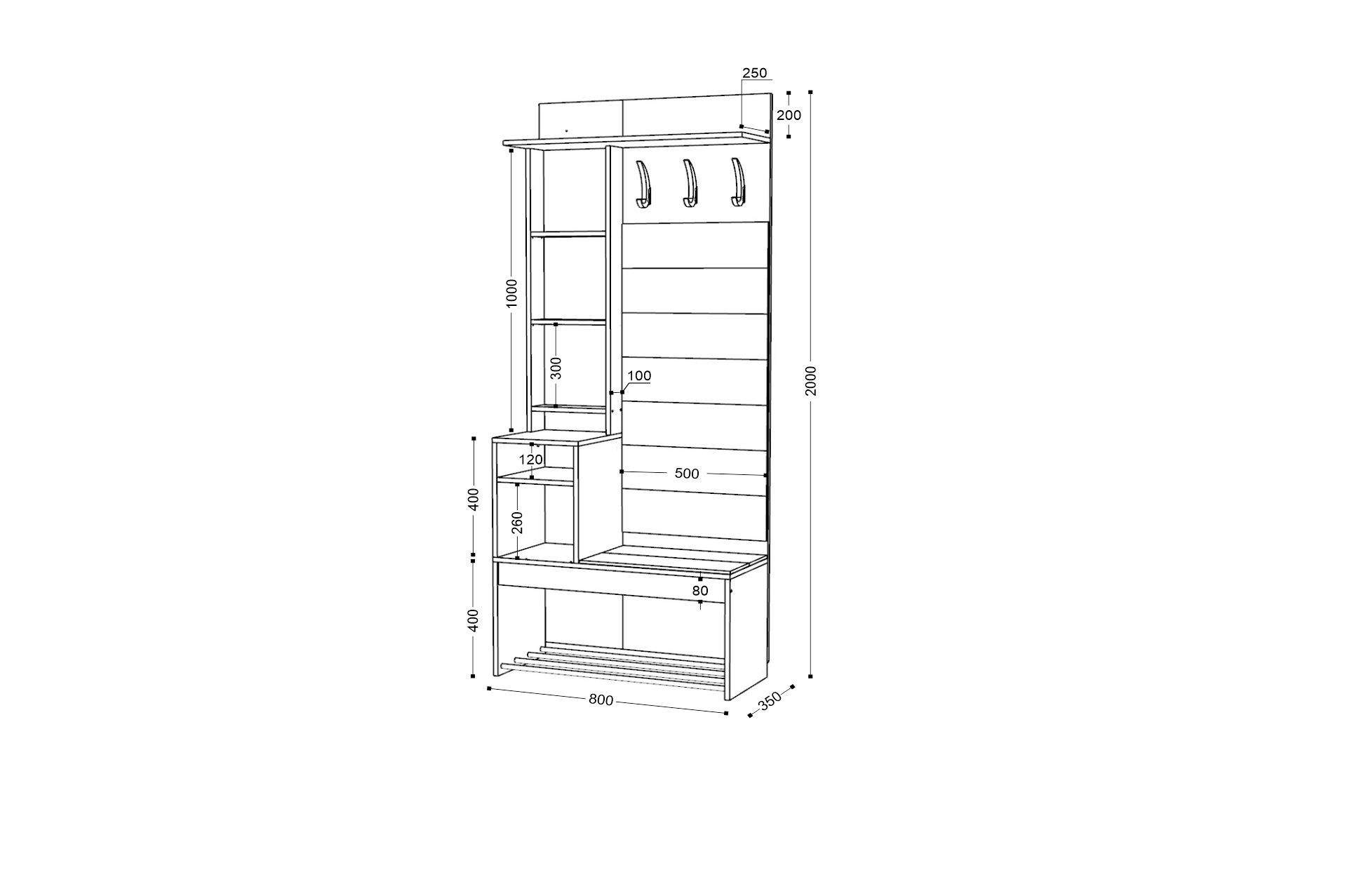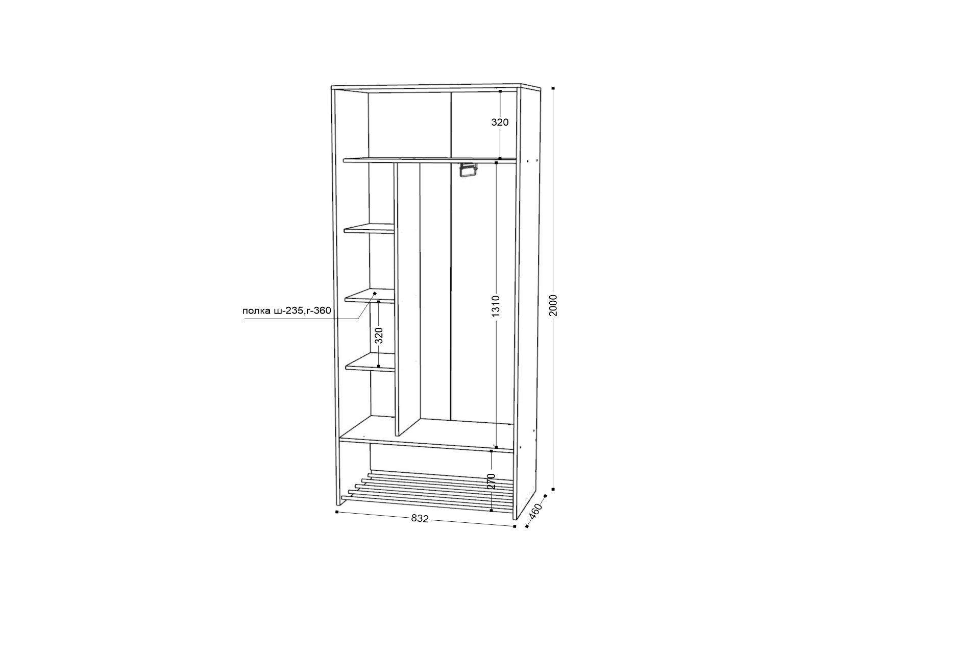 Размеры: 213,2x46, h200 cм. Цена указана за: Тумба под обувь ТБ-2 (500х350, h450 мм), прихожая П-1 (800х350, h2000 мм), шкаф-купе без зеркала (832х460, h2000 мм).