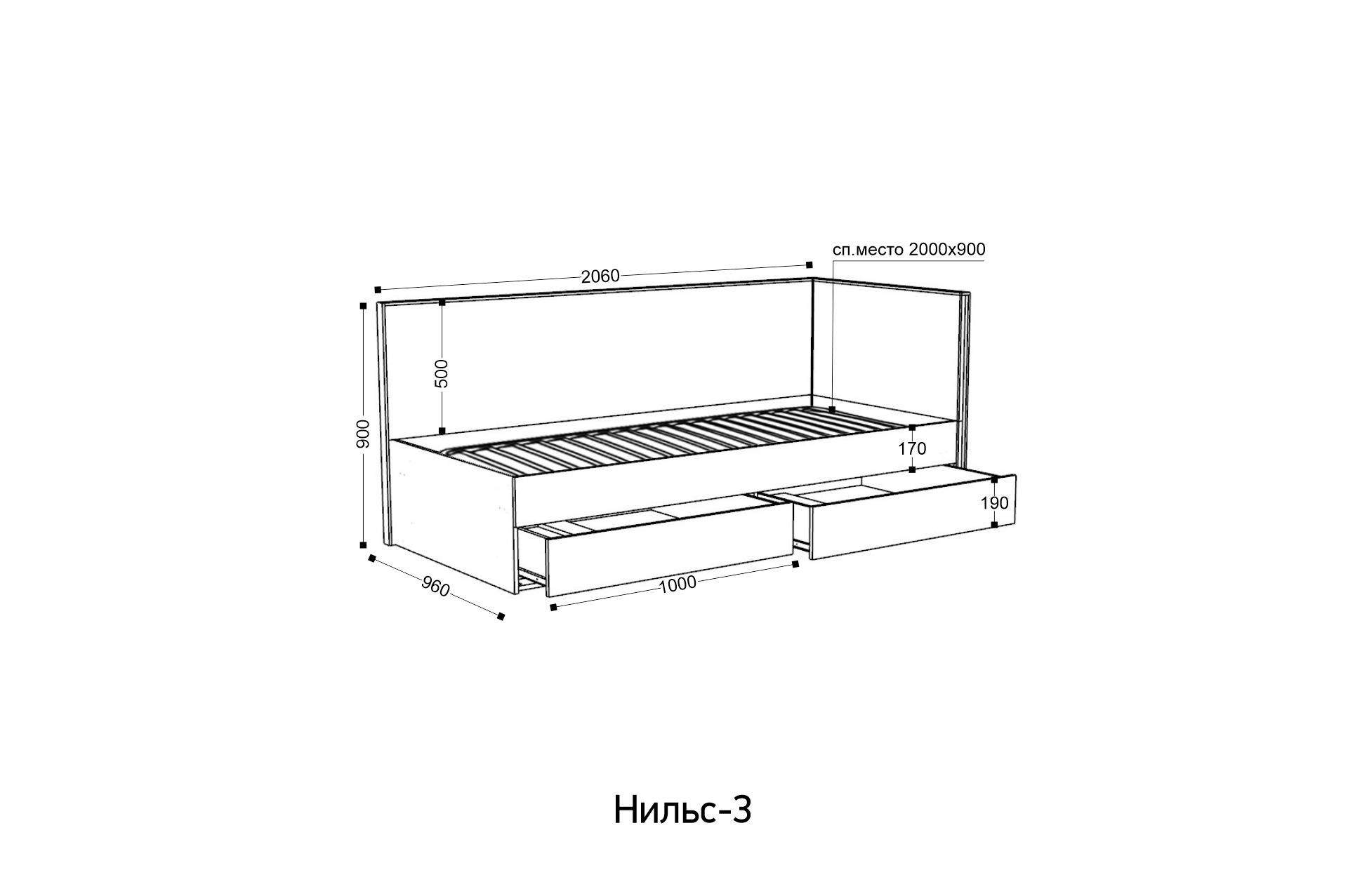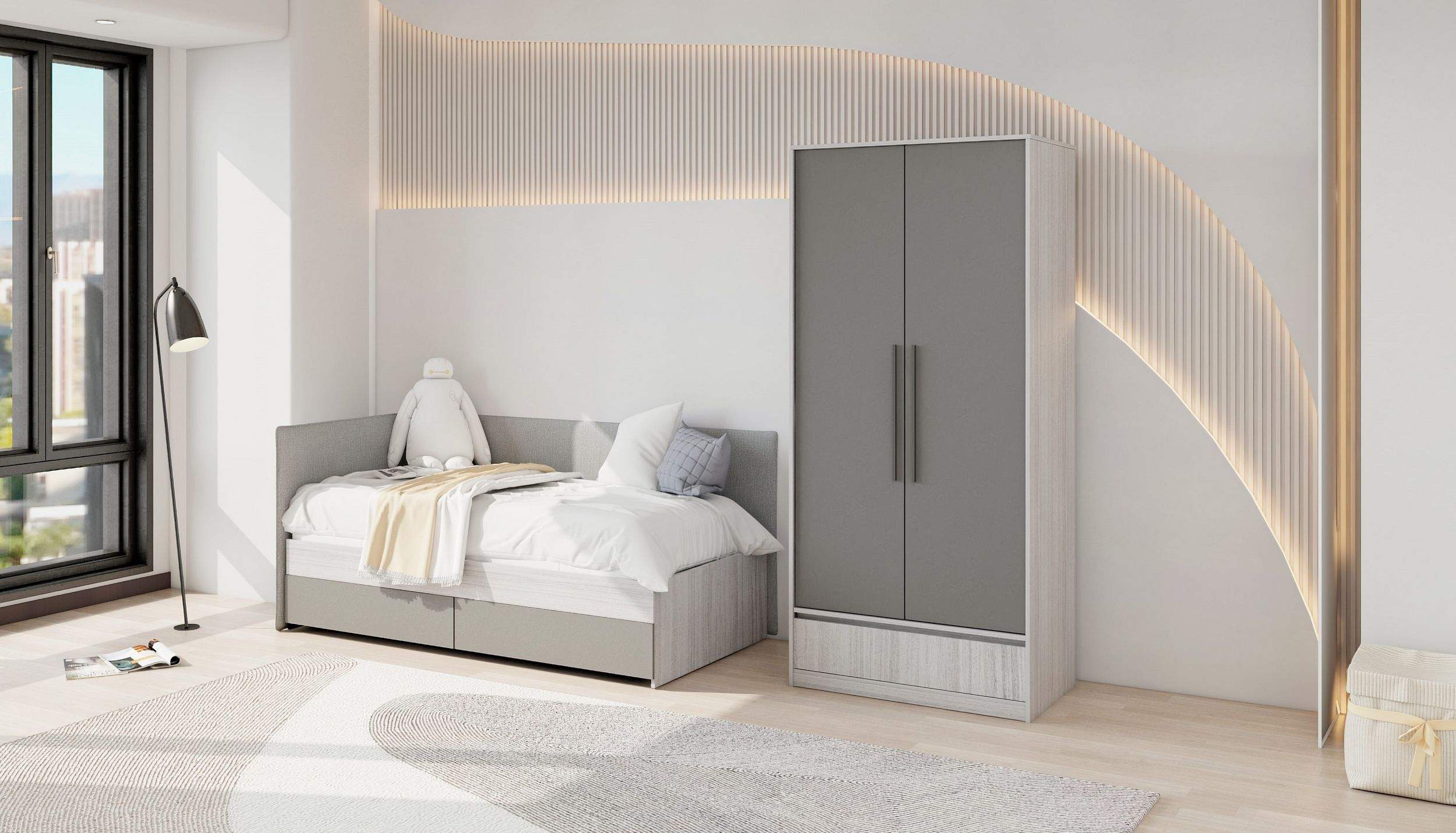 Размеры: 300x300, h216 cм. Цена указана за: кровать-тахта с основанием (2060х960, h900 мм), шкаф 2-х дверный (900х530, h2160 мм). В комплект входит ортопедическое основание. Спальное место 900х2000 мм. Матрас в комплект не входит.