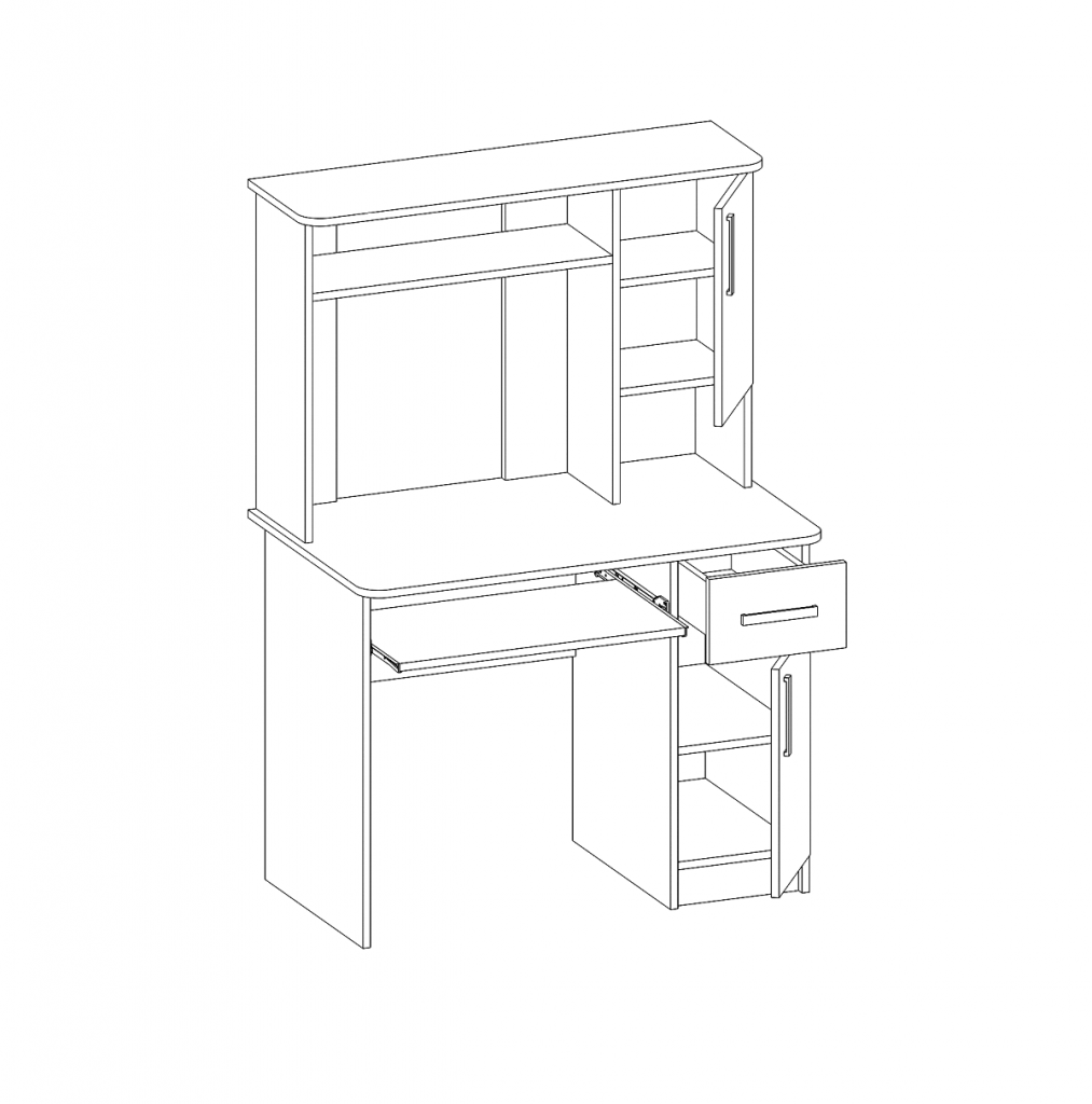 Стол изготовлен из ЛДСП. В изделии используются надежная, современная фурнитура и качественные, экологически чистые материалы. Модель стола оборудована выдвижиной полкой для клавиатуры, различными полками для пренадлежностей и аксессуаров, тумбами и выдвижным ящиком. У стола есть все необходимое, чтобы с комфортом разместить компьютер, сопутствующую технику и канцелярские принадлежности и различные аксессуары. Современный, стильный, качественный компьютерный стол "Шагус-6" будет надежным помошником в организации места для учебы, работы или досуга. Стол хорошо сочетается с любым стилем помещения.