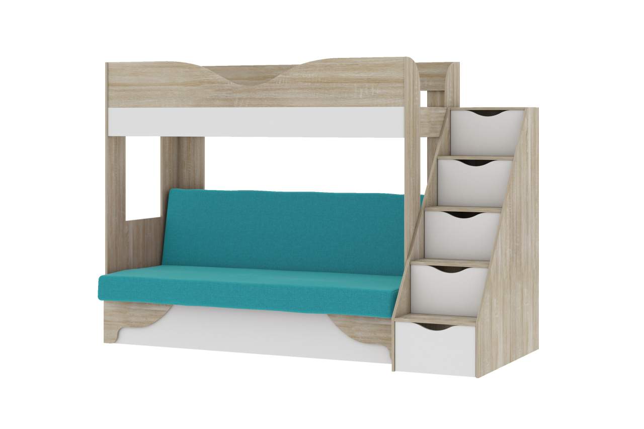 Двухъярусная кровать с диваном Шерри дуб сонома/бирюза