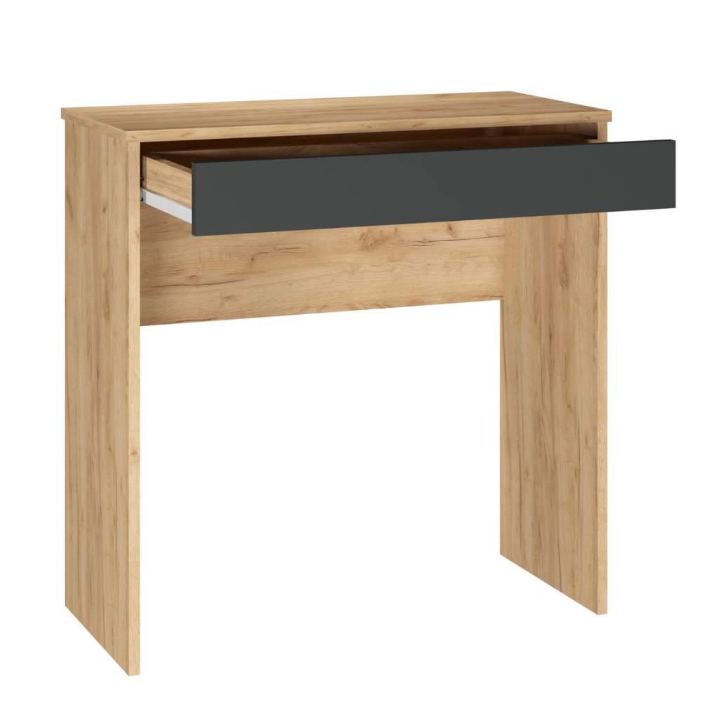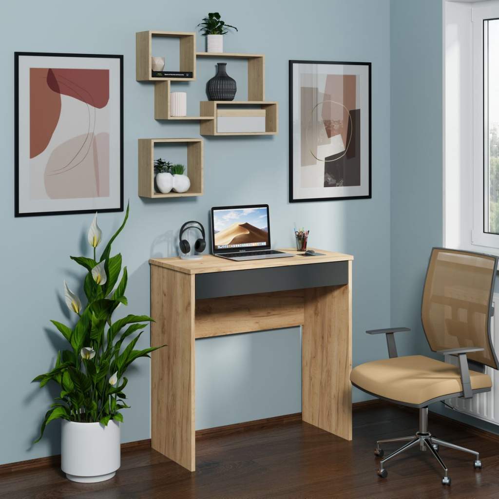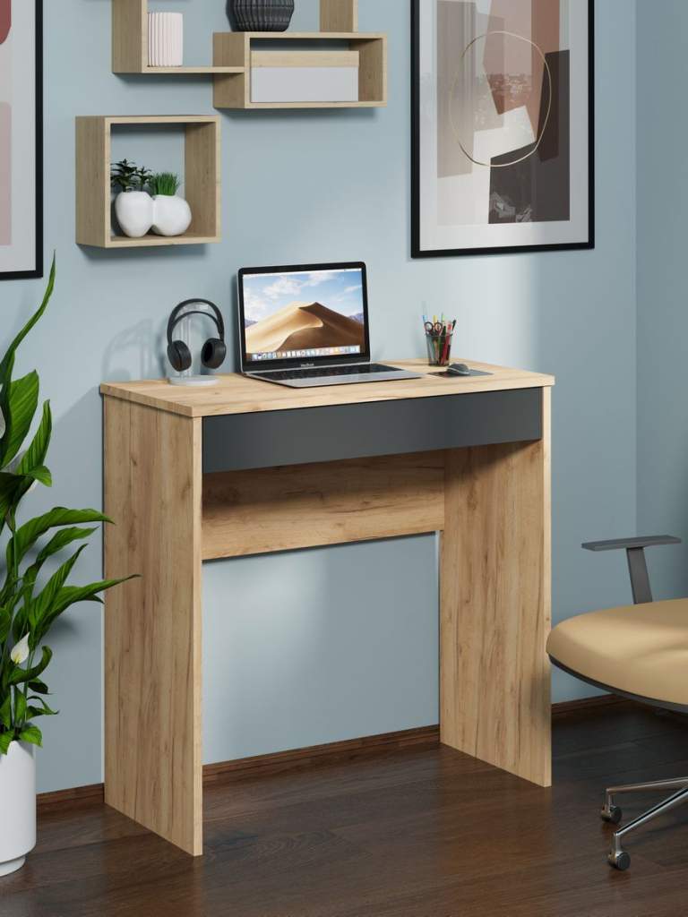 Стол письменный Марино выполнен в стильном сочетании дуба золотого и антрацита, что придаёт ему современный и элегантный вид. Этот стол идеально подходит для домашнего офиса или рабочего пространства, создавая комфортную и продуктивную атмосферу.