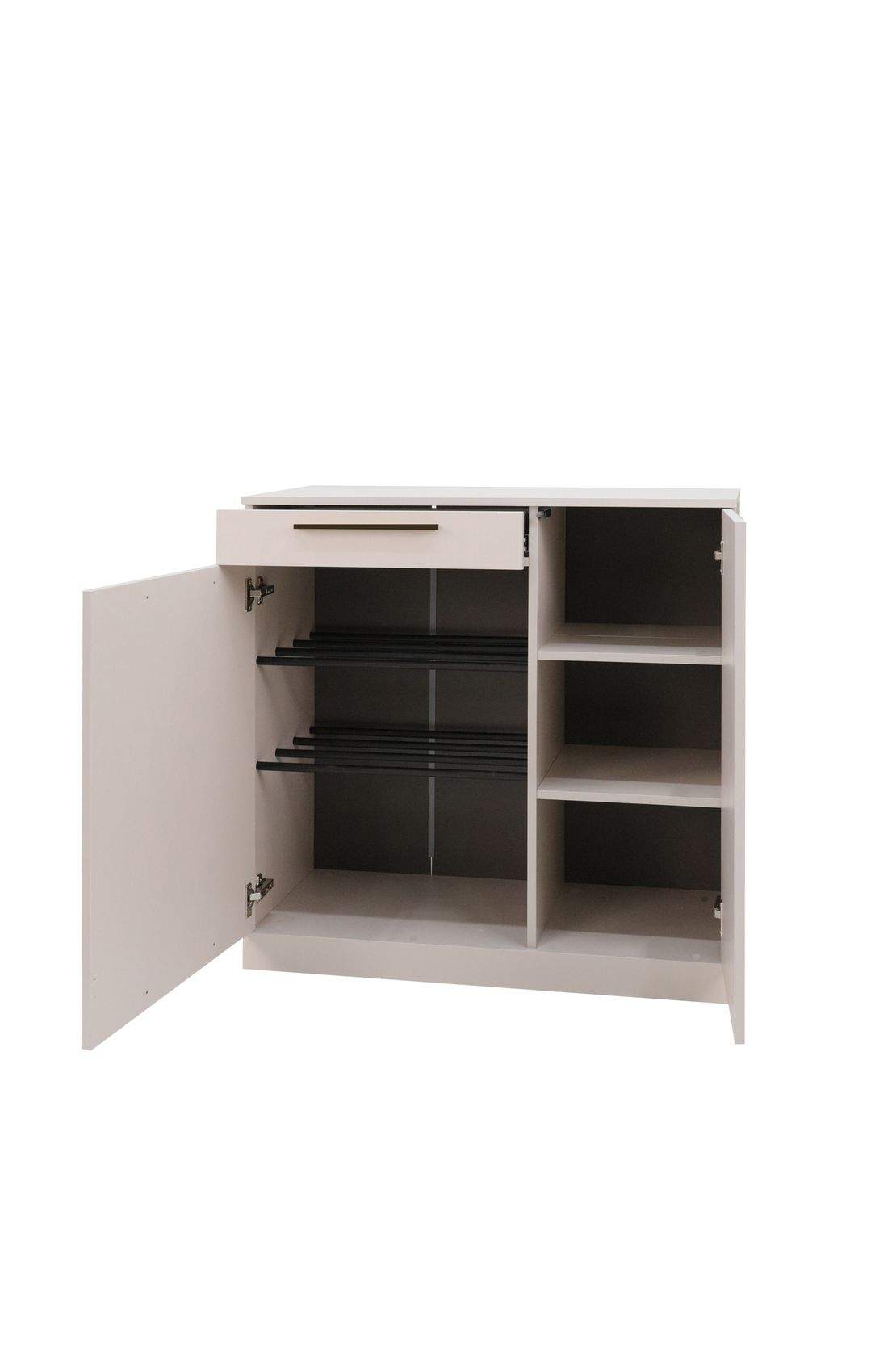 Размеры: 90x40, h90 cм. Тумба для обуви идеальна и как отдельный элемент прихожей, так и в комплекте модулей коллекции "Николь". Тумба оснащена двумя металлическими полками для хранения обуви, выдвижным ящиком и тремя полочки для хранения.