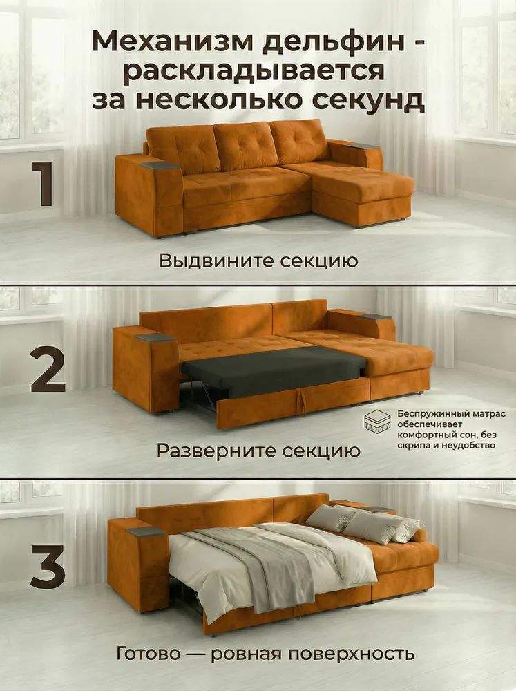 Механизм трансформации: дельфин. Спальное место, мм: 1970х1440.