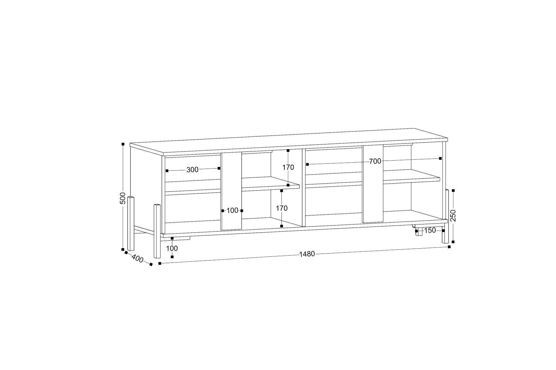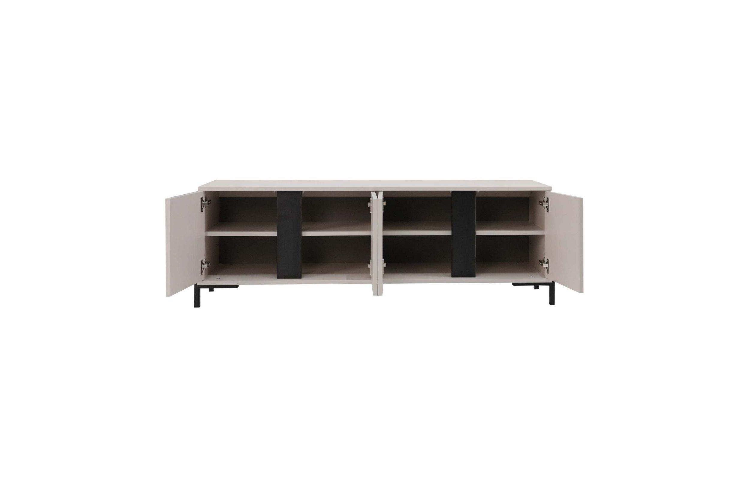 Размеры: 148x40, h50 cм. Подчеркните стиль и функциональность своего интерьера с нашей элегантной напольной тумбой на металлических опорах. Черные вставки из ЛДСП придают ей изысканный вид и создают современный акцент.