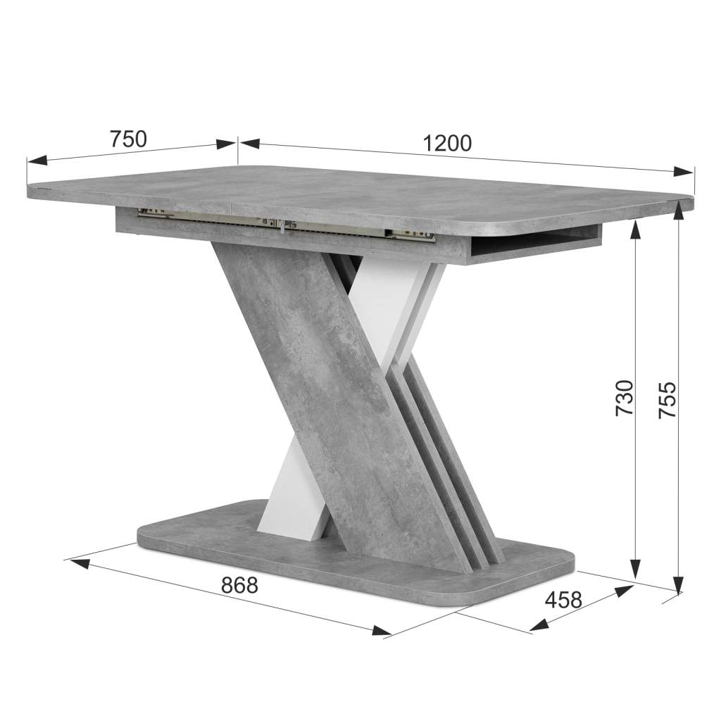 Стол обеденный раздвижной Радость цемент светлый/белый