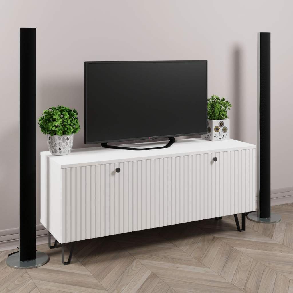 Тумба ТВ Элегант белый — это стильный и функциональный элемент мебели, который идеально впишется в любой современный интерьер. Она выполнена в классическом белом цвете, что придаёт ей элегантный и свежий вид. Эта тумба не только украсит вашу гостиную, но и обеспечит удобное место для установки телевизора и хранения аксессуаров.
