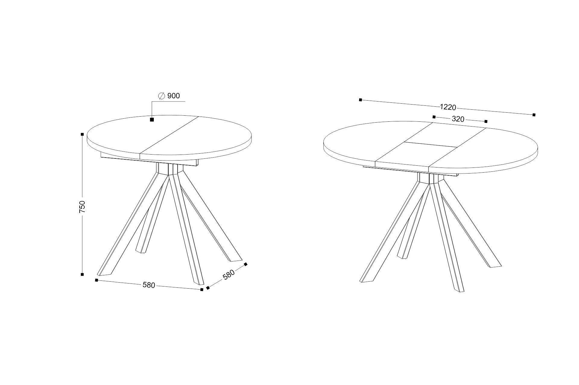 Размеры: 122x90, h75 cм. Минималистичный и стильный стол кухонный раскладной “Кэтти”. Эта устойчивая модель на металлических опорах белого или черного цвета на выбор. Практичная и надежная конструкция в новых актуальных цветах. Раздвижной механизм “Бабочка” прост в использовании, позволяет легко увеличивать площадь стола.