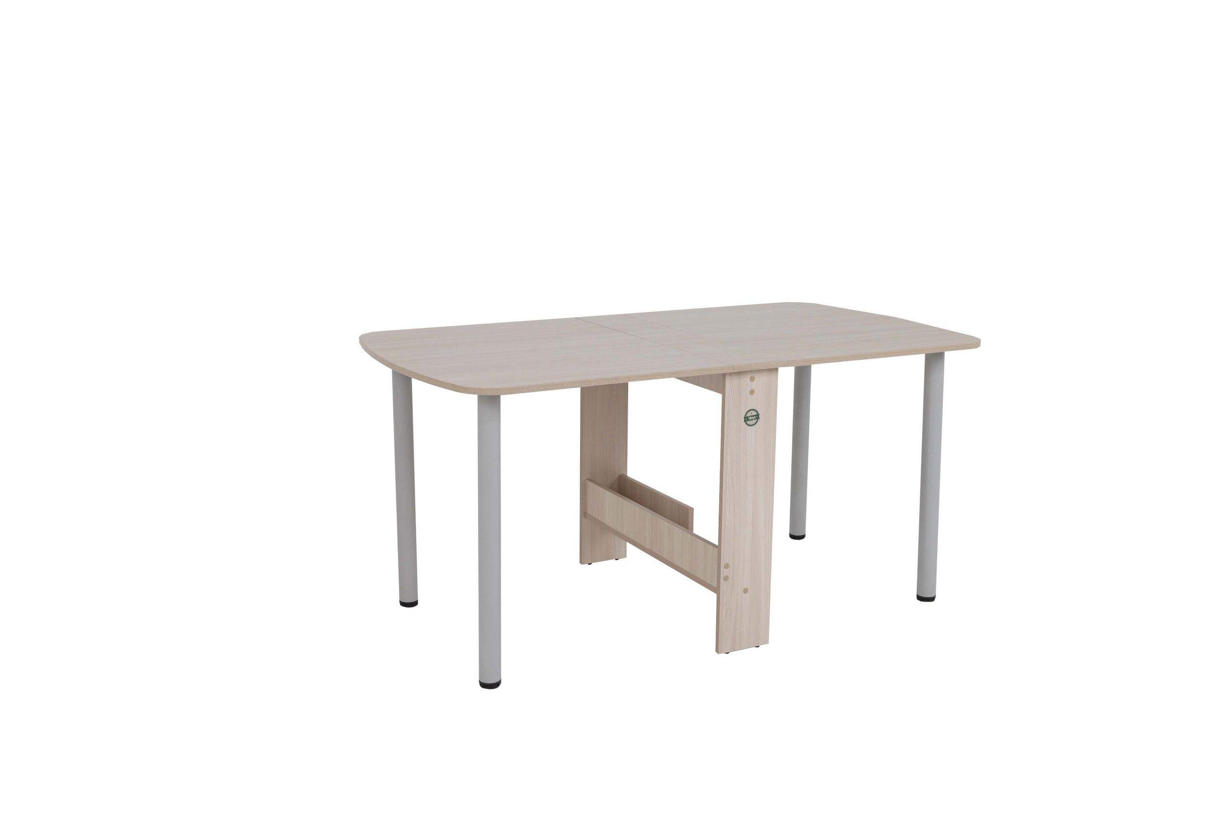 Размеры: 155x83, h73,5 cм. У нас есть идеальный стол-книжка, размеры которого впишутся в любое пространство. Опоры стола металлические с регулировкой.
