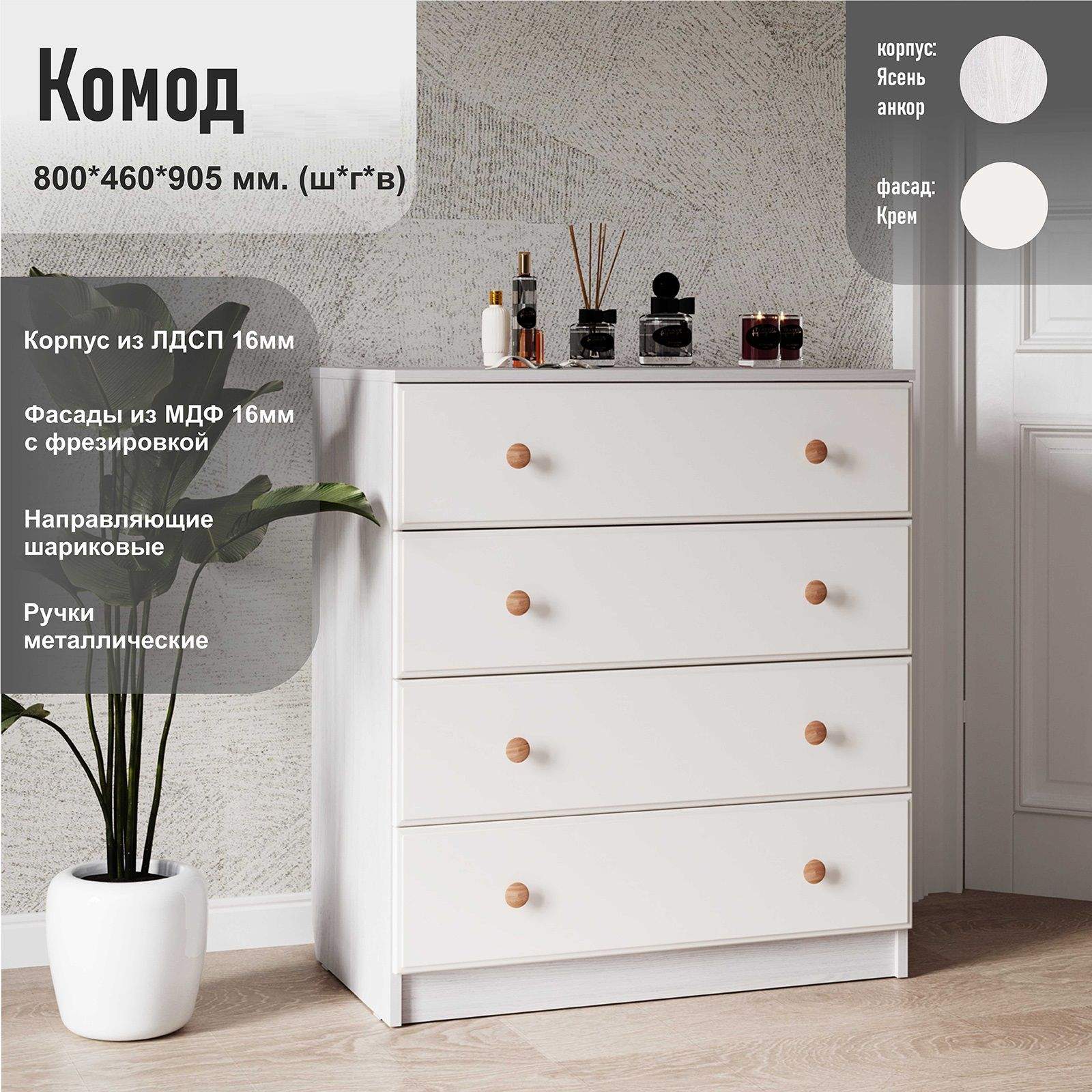 Комод Афродита ясень анкор светлый/крем