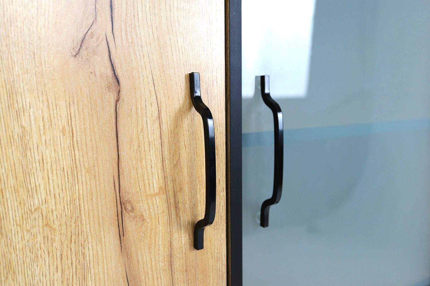 Шкаф-витрина Вудсен дуб крафт золотой / черный