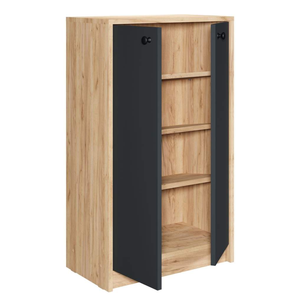 Тумба высокая Марино в цвете дуб золотой и антрацит — идеальное решение для хранения обуви и других аксессуаров. Элегантный дизайн и сочетание современных материалов делают эту тумбу не только функциональной, но и стильной частью вашего интерьера.