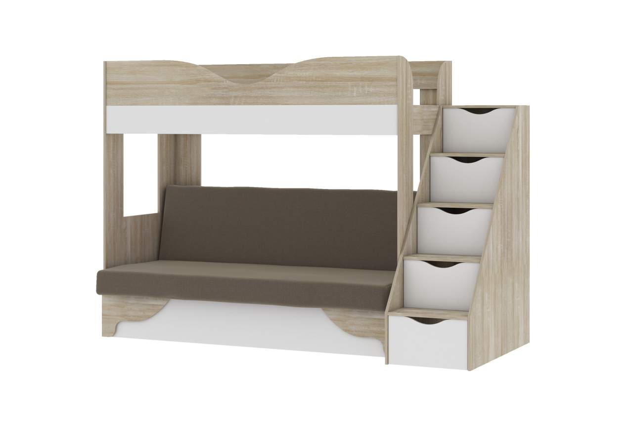 Двухъярусная кровать с диваном Шерри дуб сонома/коричневый