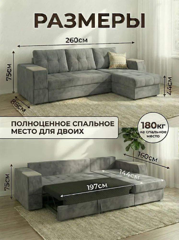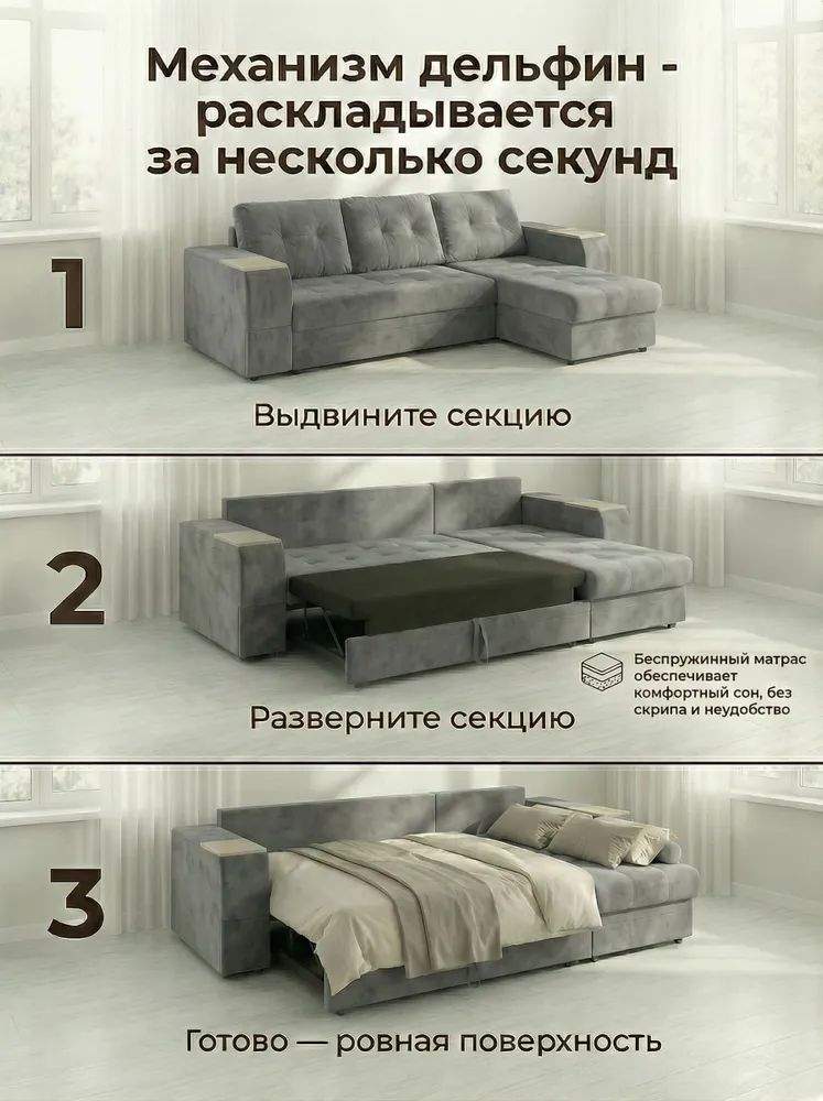 Механизм трансформации: дельфин. Спальное место, мм: 1970х1440.