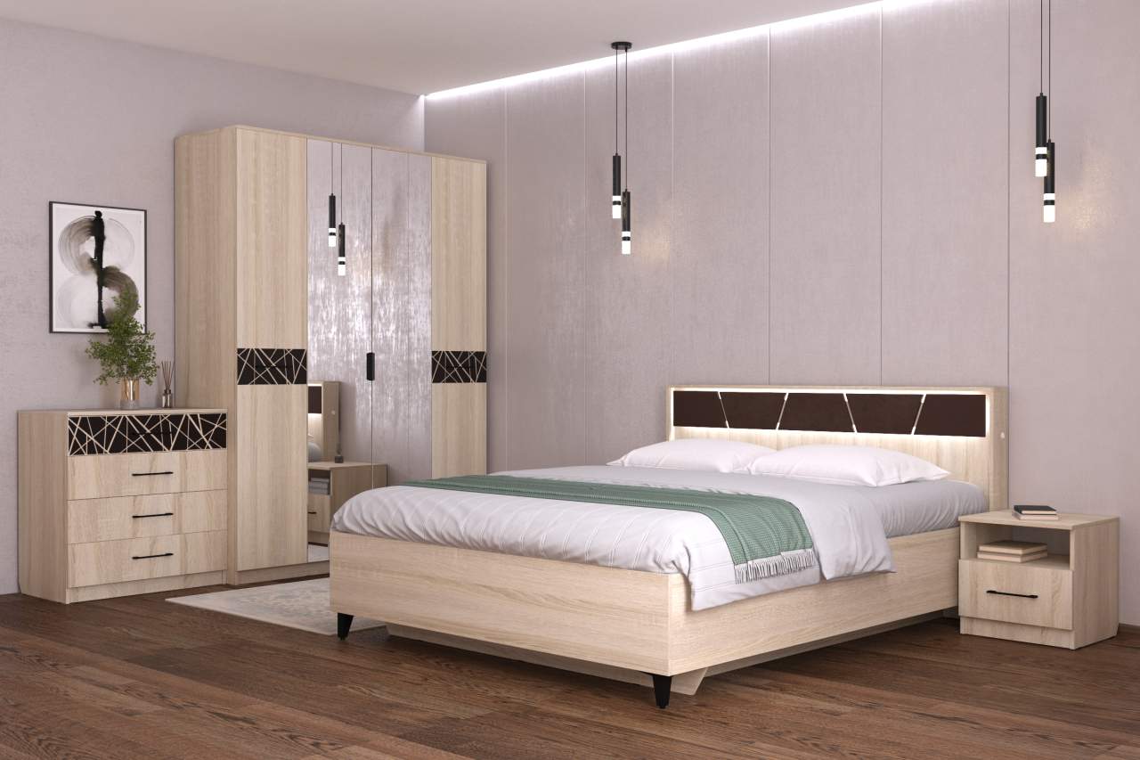 Комплект на фото состоит из: Кровать 160 с подъемным механизмом (1688x2125, h950 мм, спальное место 1600х2000 мм), Тумба прикроватная ТП-1 /2шт./ (450x423, h455 мм), Комод (800x473, h837 мм), Шкаф 4-х створчатый (1600x550, h2171 мм). Спальное место: 1600х2000 мм. Спальня Донна дуб сонома — это стильный и функциональный набор мебели для спальни, который создаст атмосферу уюта и комфорта в вашем доме. Комплект включает в себя все необходимые элементы для обустройства спальни, выполненные из качественных материалов и в современном дизайне.