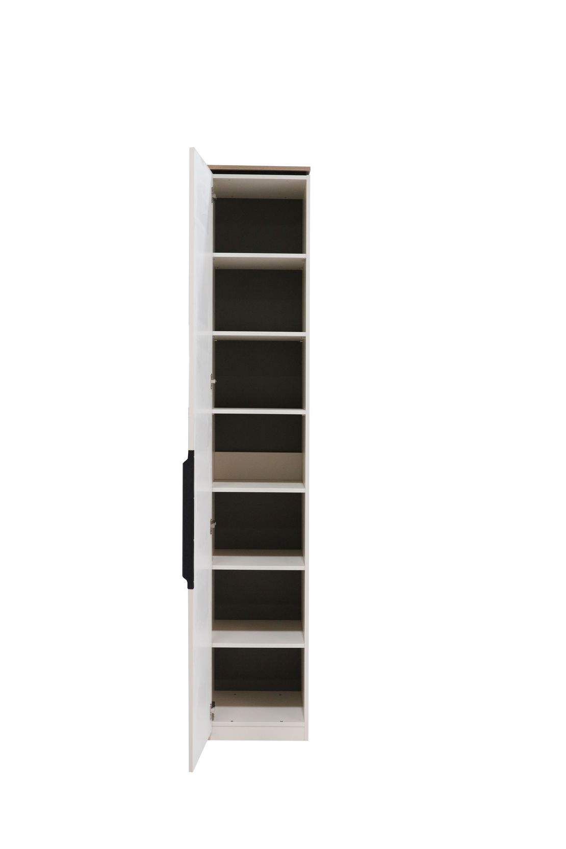Размеры: 40x40, h230 cм. Компактный пенал объединяет практичность и стиль благодаря семи вместительным отделениям, которые обеспечивают дополнительное пространство для хранения одежды и аксессуаров.