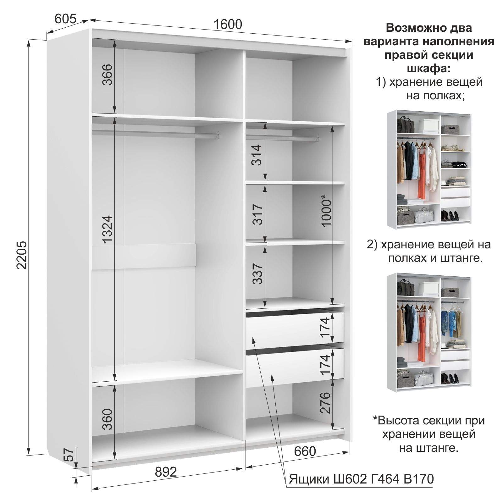 Размеры: 160x60,5, h220,5 cм.
