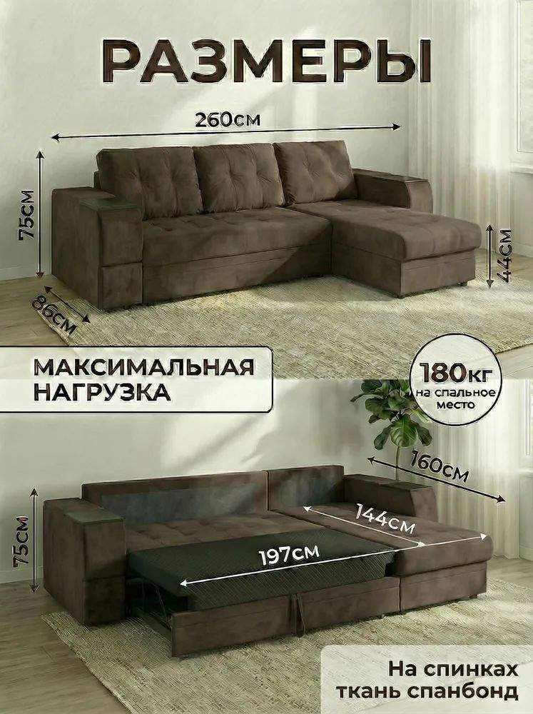 Механизм трансформации: дельфин. Спальное место, мм: 1970х1440.
