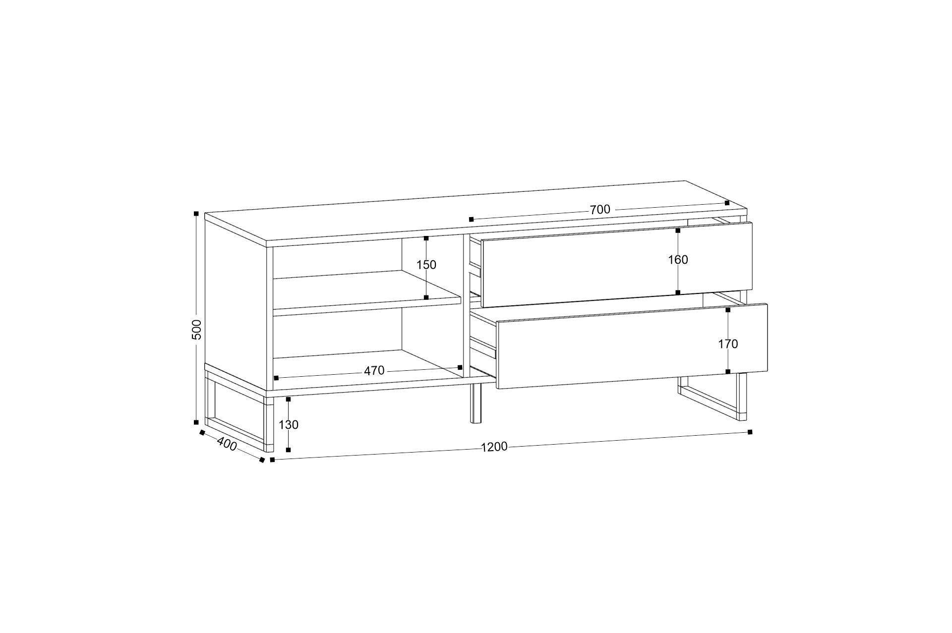 Размеры: 120x40, h50 cм. Уникальная тумба ТВ с современным дизайном это идеальное решение для вашей гостиной! В ней есть выдвижные и распашные ящики, которые позволят вам организовать все необходимые вещи. Ее металлические опоры и ручки добавляют ей стильности и элегантности.