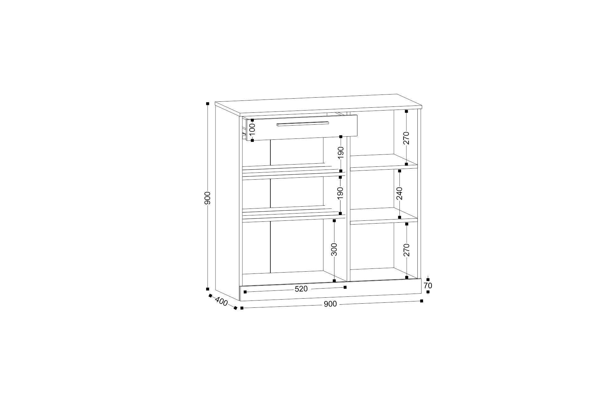 Размеры: 90x40, h90 cм. Тумба для обуви идеальна и как отдельный элемент прихожей, так и в комплекте модулей коллекции "Николь". Тумба оснащена двумя металлическими полками для хранения обуви, выдвижным ящиком и тремя полочки для хранения.