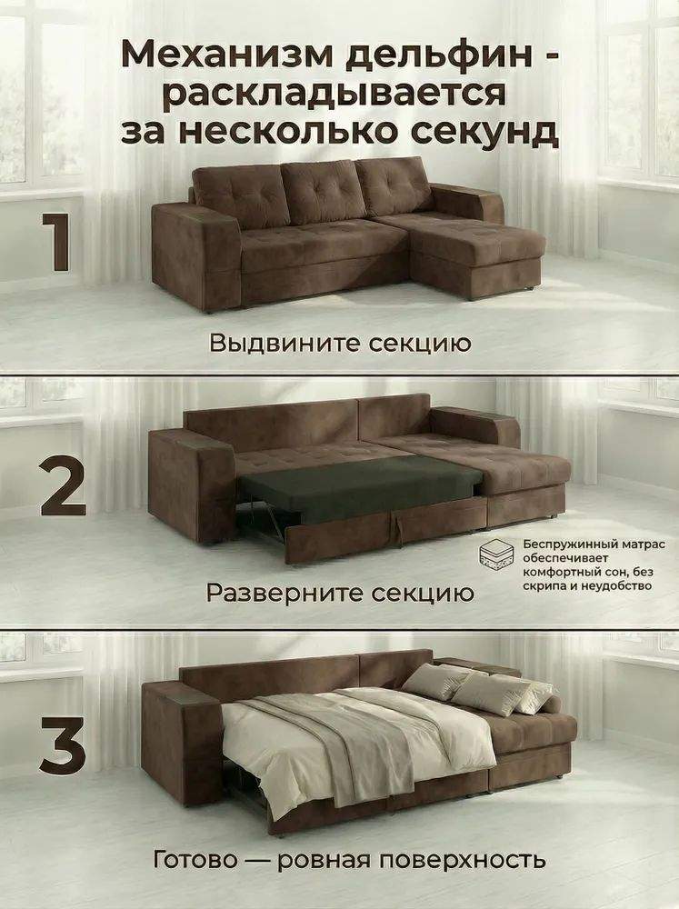 Механизм трансформации: дельфин. Спальное место, мм: 1970х1440.