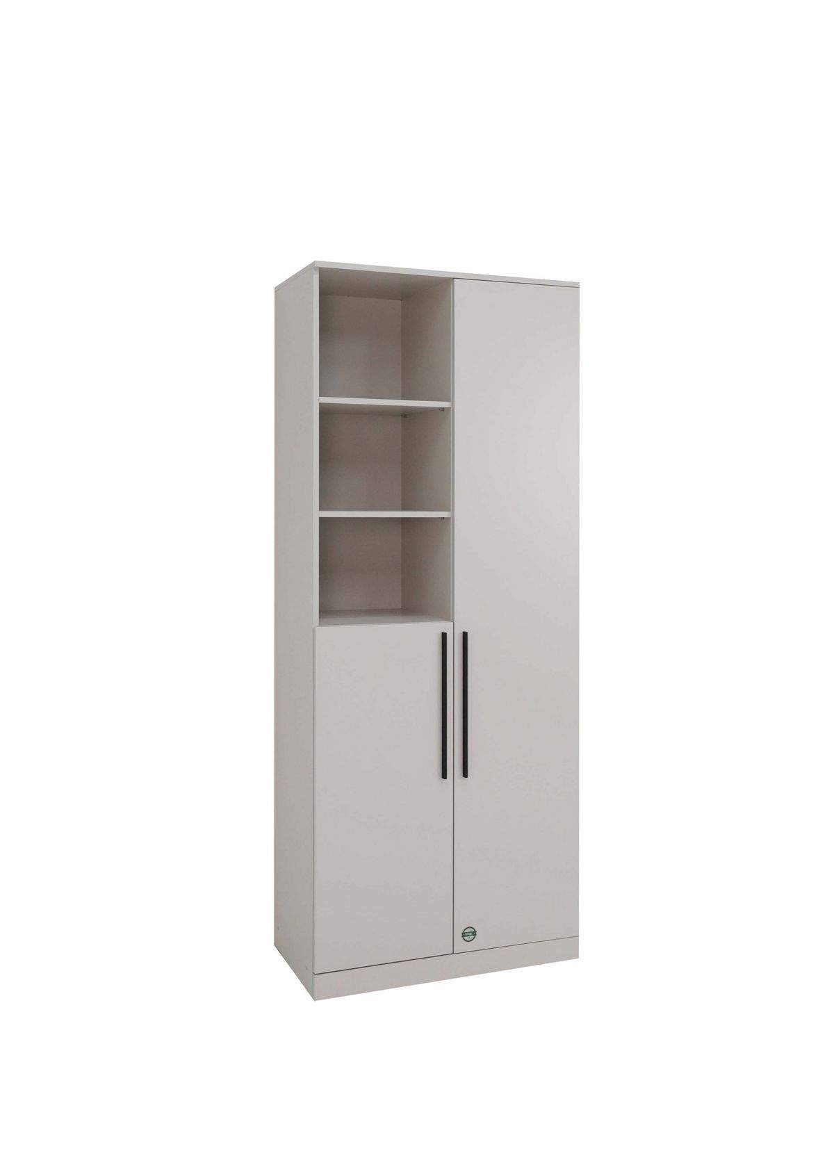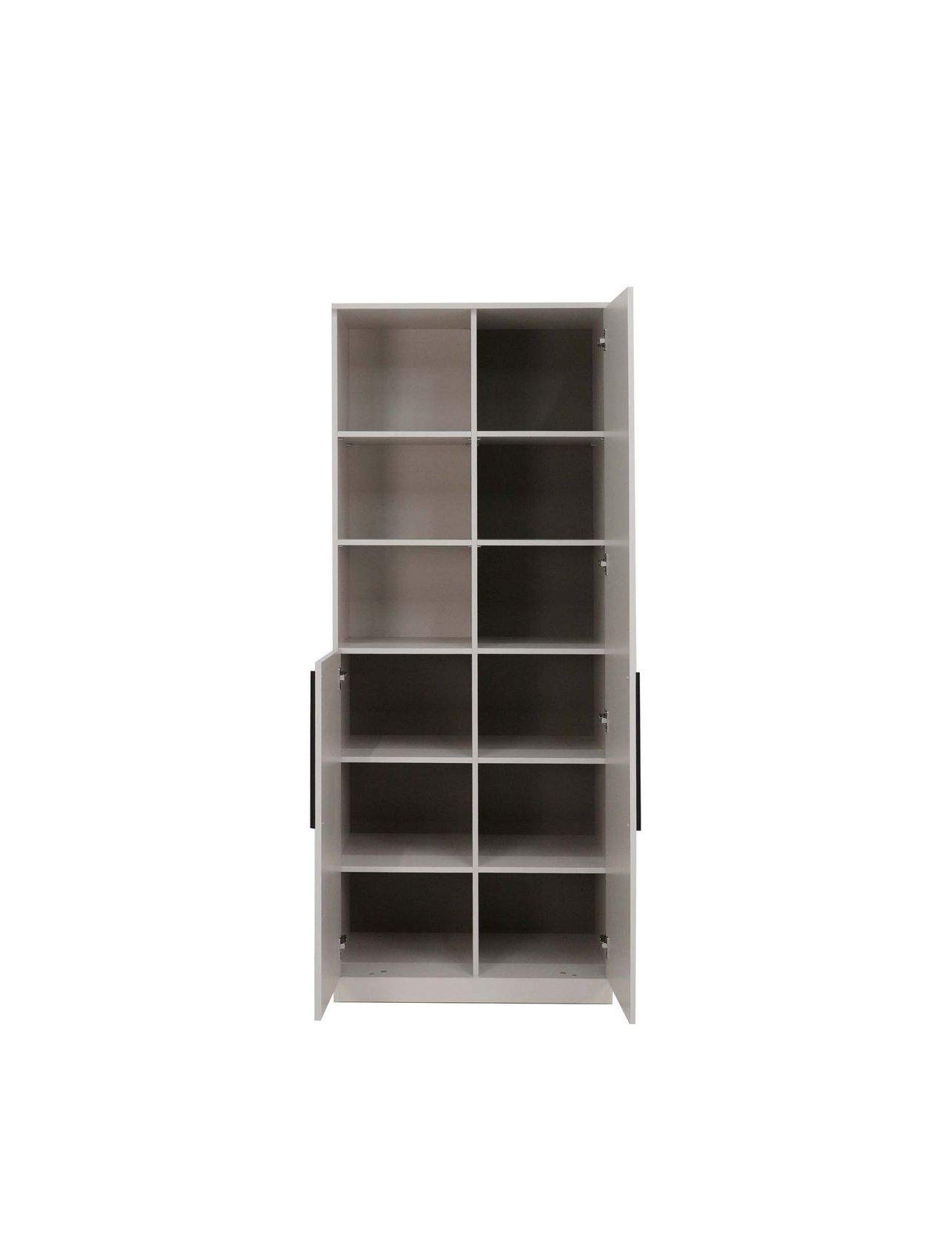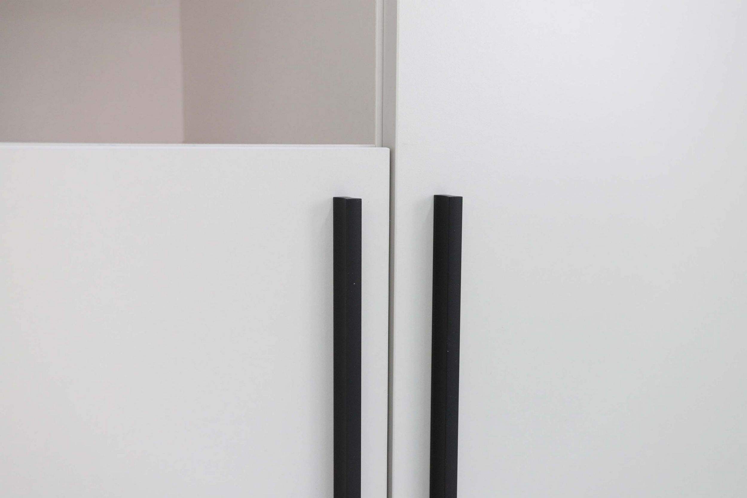 Размеры: 80x45, h200 cм. Стеллаж отлично вписывается интерьер и гармонично сочетается с одноименной серией. На выбор представлены два цвета ручек: черный матовый и сатиновое золото.