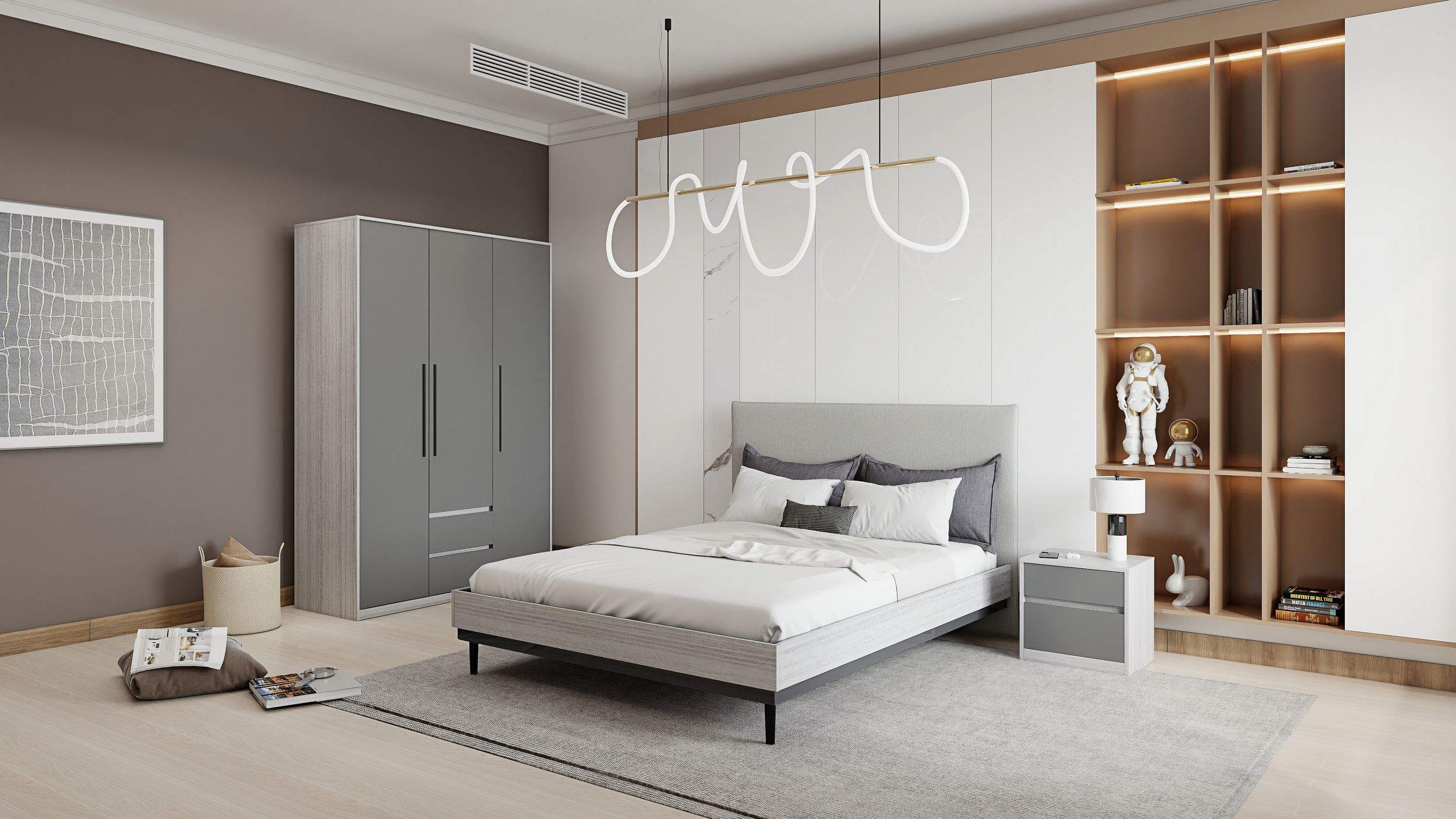 Размеры: 300x300, h216 cм. Цена указана за: кровать 120 с основанием (1350х2064, h1110 мм), тумба прикроватная 2шт. (450х400, h450 мм), шкаф 3-х дверный (1350х530, h2160 мм). В комплект входит ортопедическое основание. Спальное место 1200х2000 мм. Матрас в стоимость не входит.