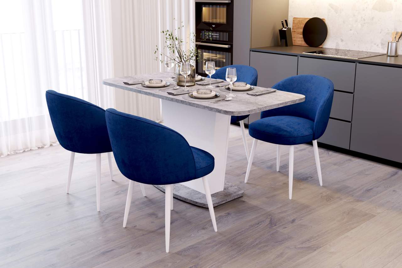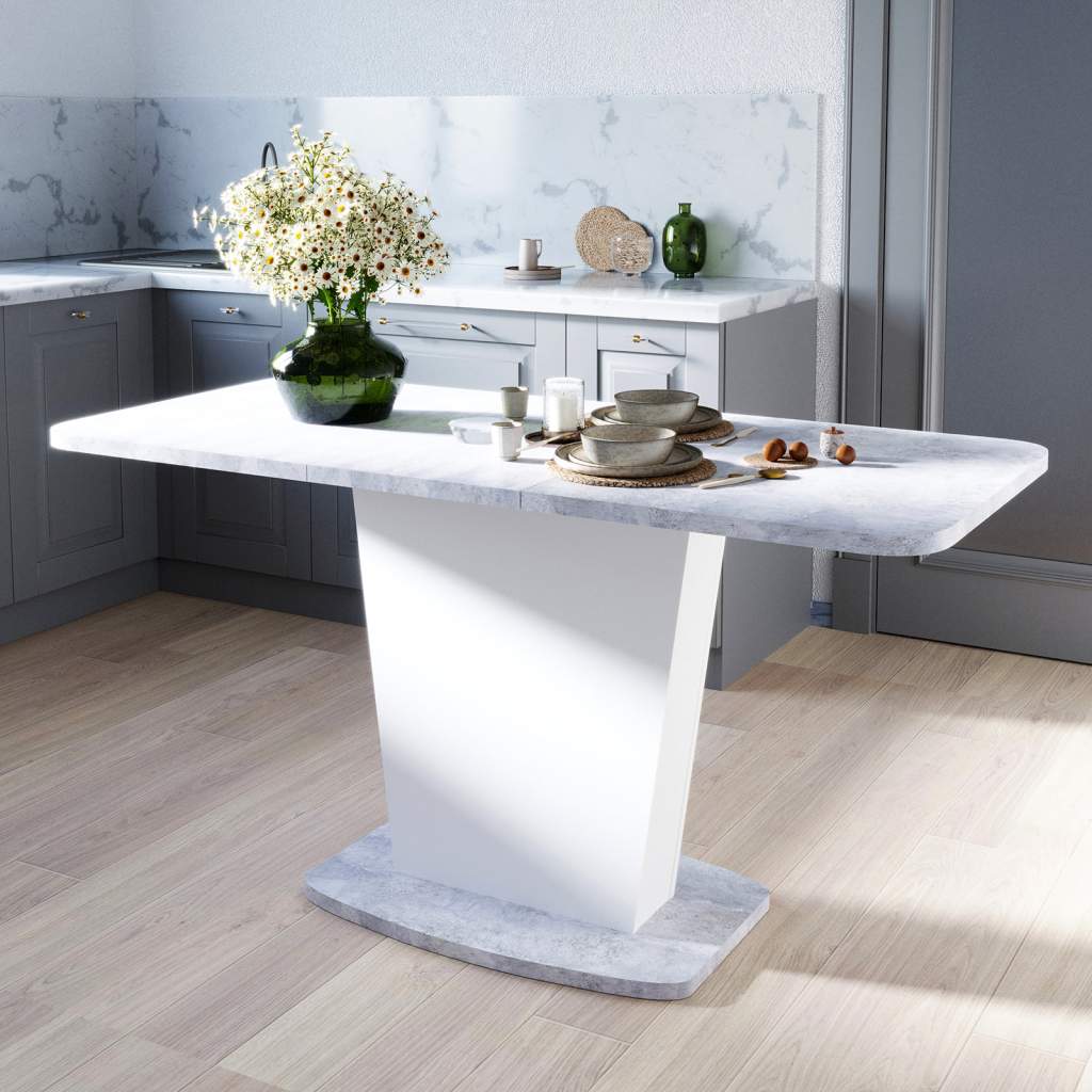 Стол обеденный раздвижной Перфект цемент светлый/белый