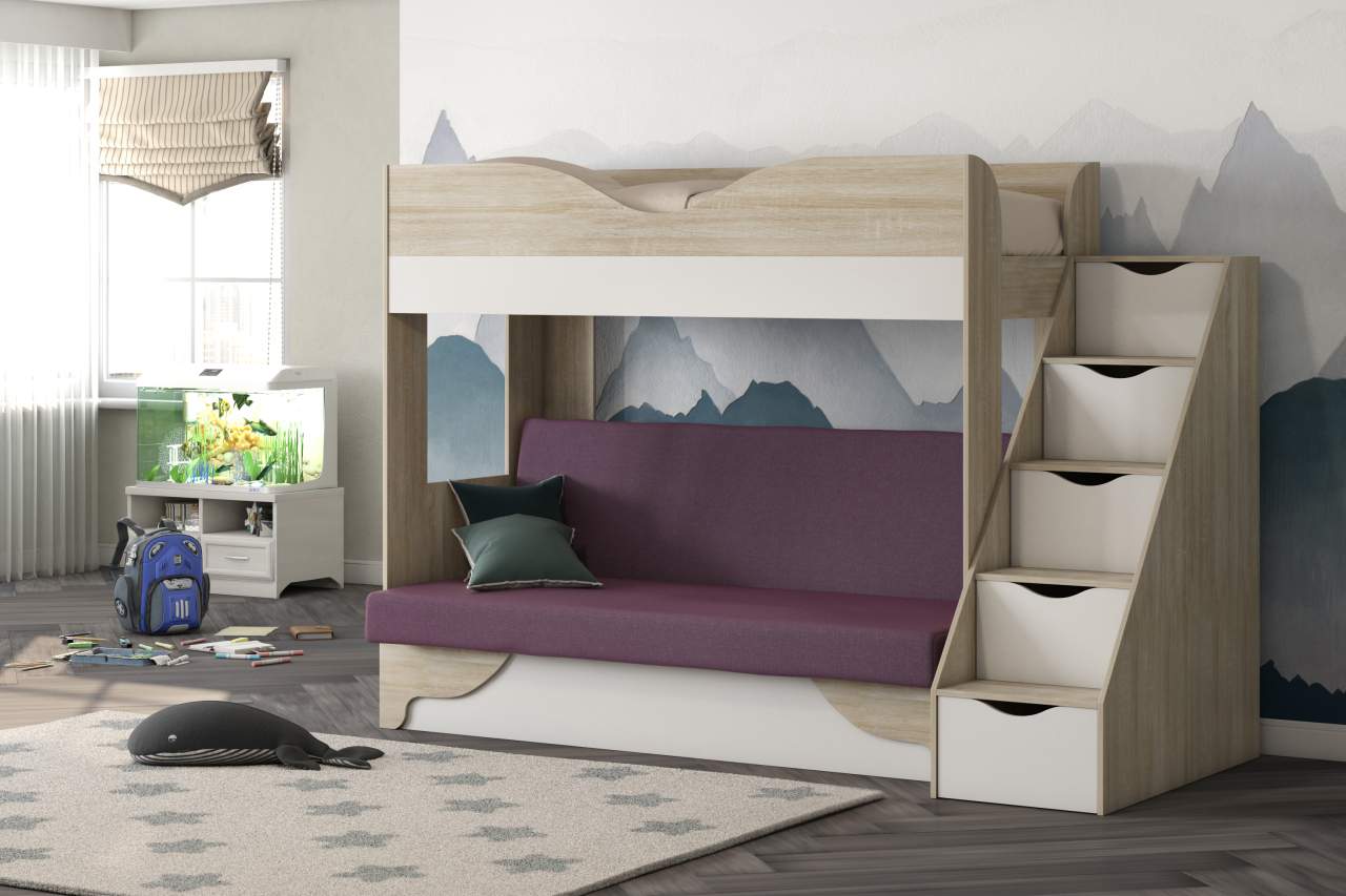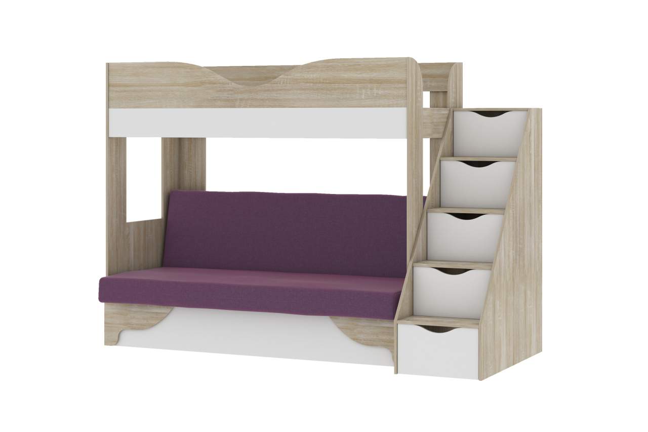 Двухъярусная кровать с диваном Шерри дуб сонома/фиолетовый