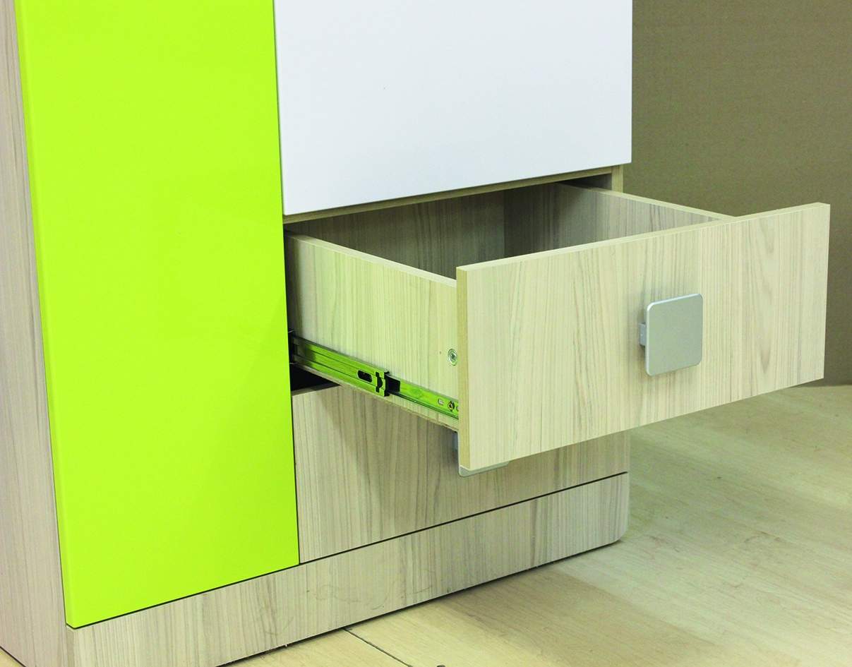 Мебель для детей «Луиза», выполненная в цвете «Лайм» подойдет как для младших, так и старших школьников. Корпуса детской «Луиза» выполнены из ЛДСП толщиной 16 и 22 мм. Торцы обработаны кромкой ПВХ. Фасады Детскаявыполнены из плиты МДФ, покрытых глянцевой пленкой белого цвета. Декоративные элементы на фасадах выполнены из МДФ с глянцевой пленкой ПВХ, по периметру подчеркнуты фрезеровкой. Все петли на фасадах с доводчиками. Направляющие на выкатных ящиках - шариковые, полного выдвижения. Модули, словно детали взрослого конструктора, умело выстраиваются в оригинальные, многофункциональные композиции неограниченной вместимости. Не стоит забывать и о тех компонентах, которые смогут обезопасить Вашего ребёнка, в детской мебели «Луиза»- это мягкие элементы, скруглённые углы и пластиковые ручки.