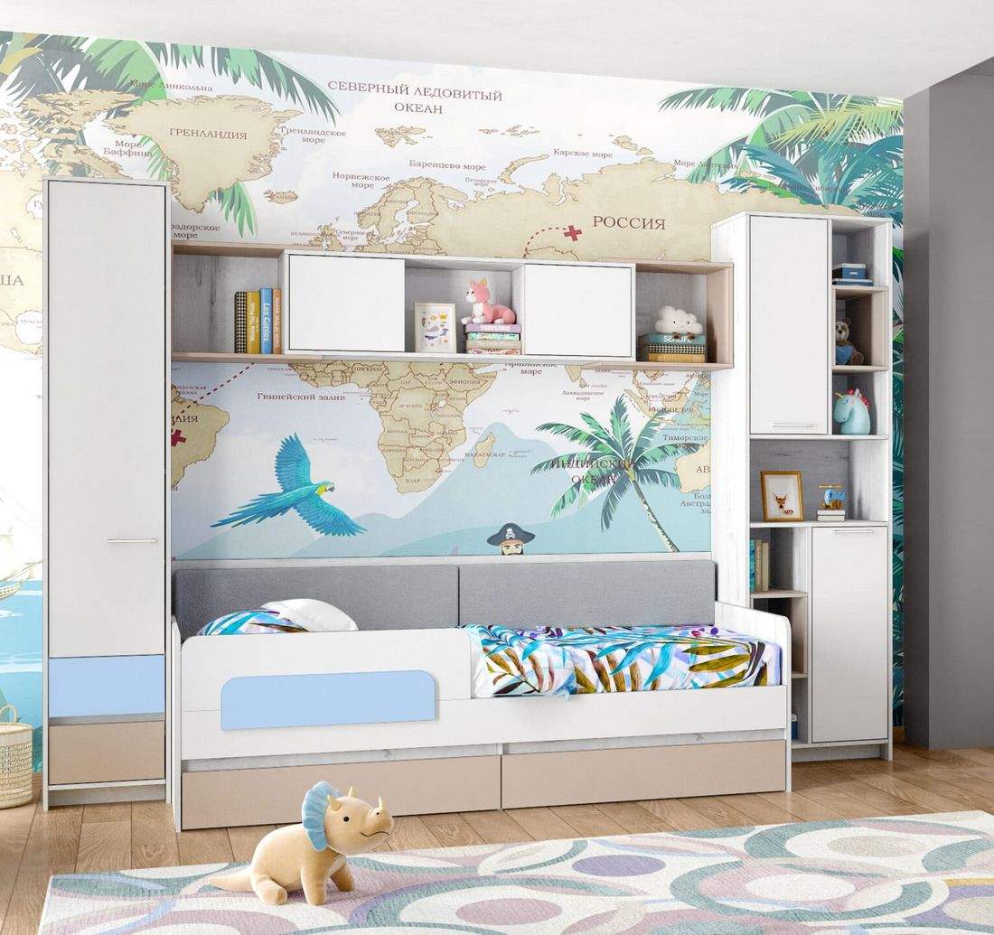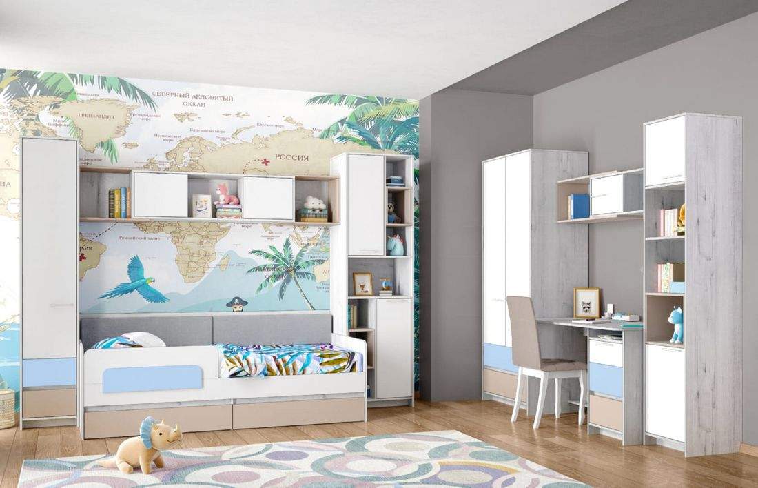 Детская Зоя дуб эльза/белый глянец/голубой/мокко