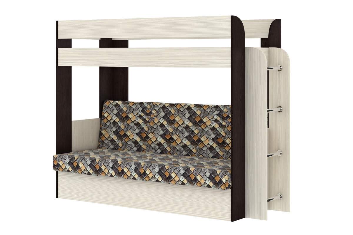 Диван-кровать двухярусная Порто ясень анкор светлый/бодега темный обивка ромб