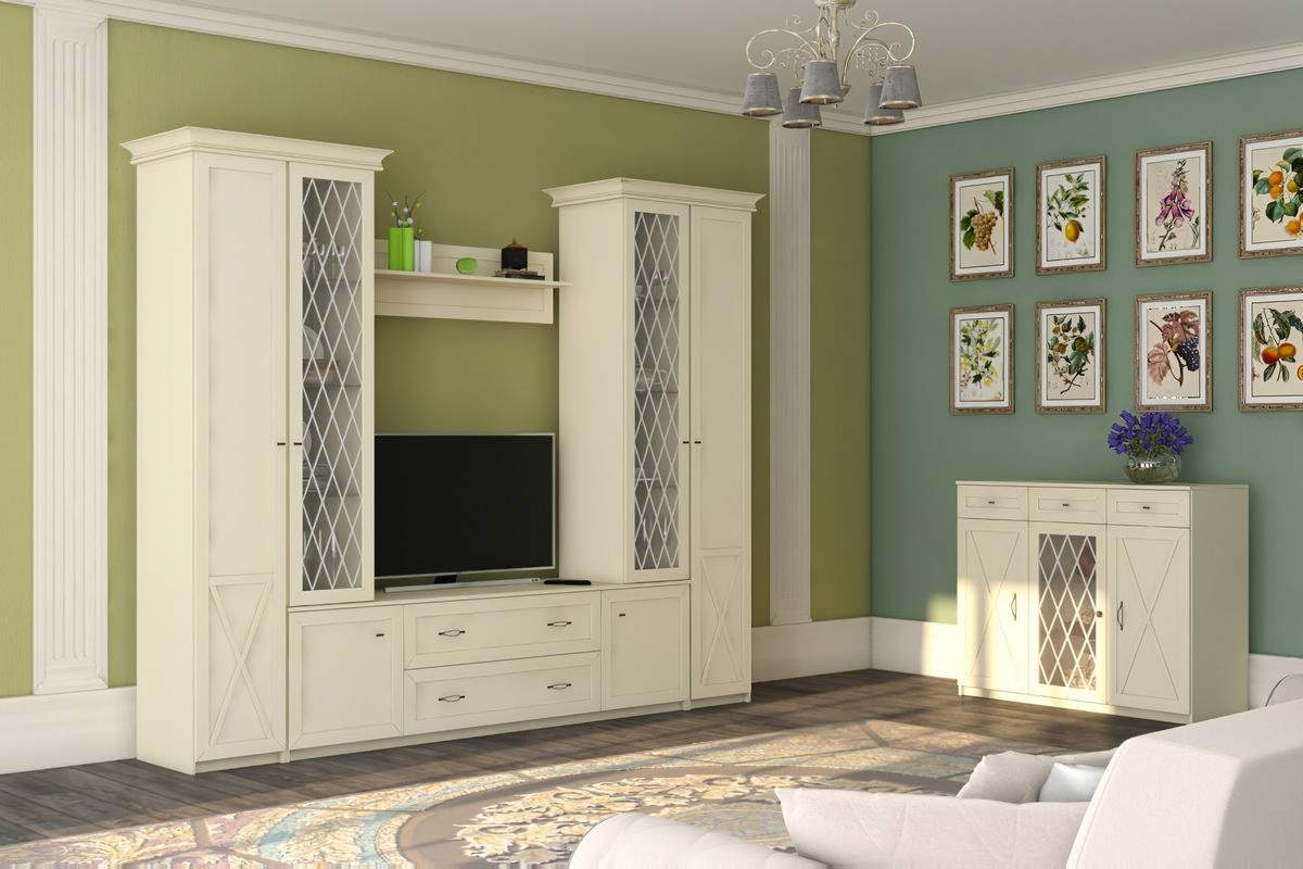 Комплект состоит из:Шкаф однодверный Бэлла ШК-2 - 2 шт. (400х414, h 2300мм), Тумба ТВ большая (2200х450, h650 мм), Надстройка Бэлла -2шт. (400х414, h 1660 мм), Полка Бэлла (160х218, h 200 мм), Комод широкий со стеклом Бэлла (1500х450, h 1200 мм). Гостиная Бэлла представляет собой современный набор мебели для комфортного обустройства комнаты. В наборе гостиной есть все необходимое - это два двухдверных шкафа со стеклом, внутри которых находятся полки для посуды, книг или других вещей. Тумба ТВ с ящиком и двумя закрытыми секциями, в которых разместится все необходимое для уютного просмотра телепередач, вместительная навесная полочка для ваз и других предметов декора. Красивая, функциональная, современная гостиная Бэлла будет радовать Вас долгое время. Изготовлена из качественного и экологически чистого ЛДСП.