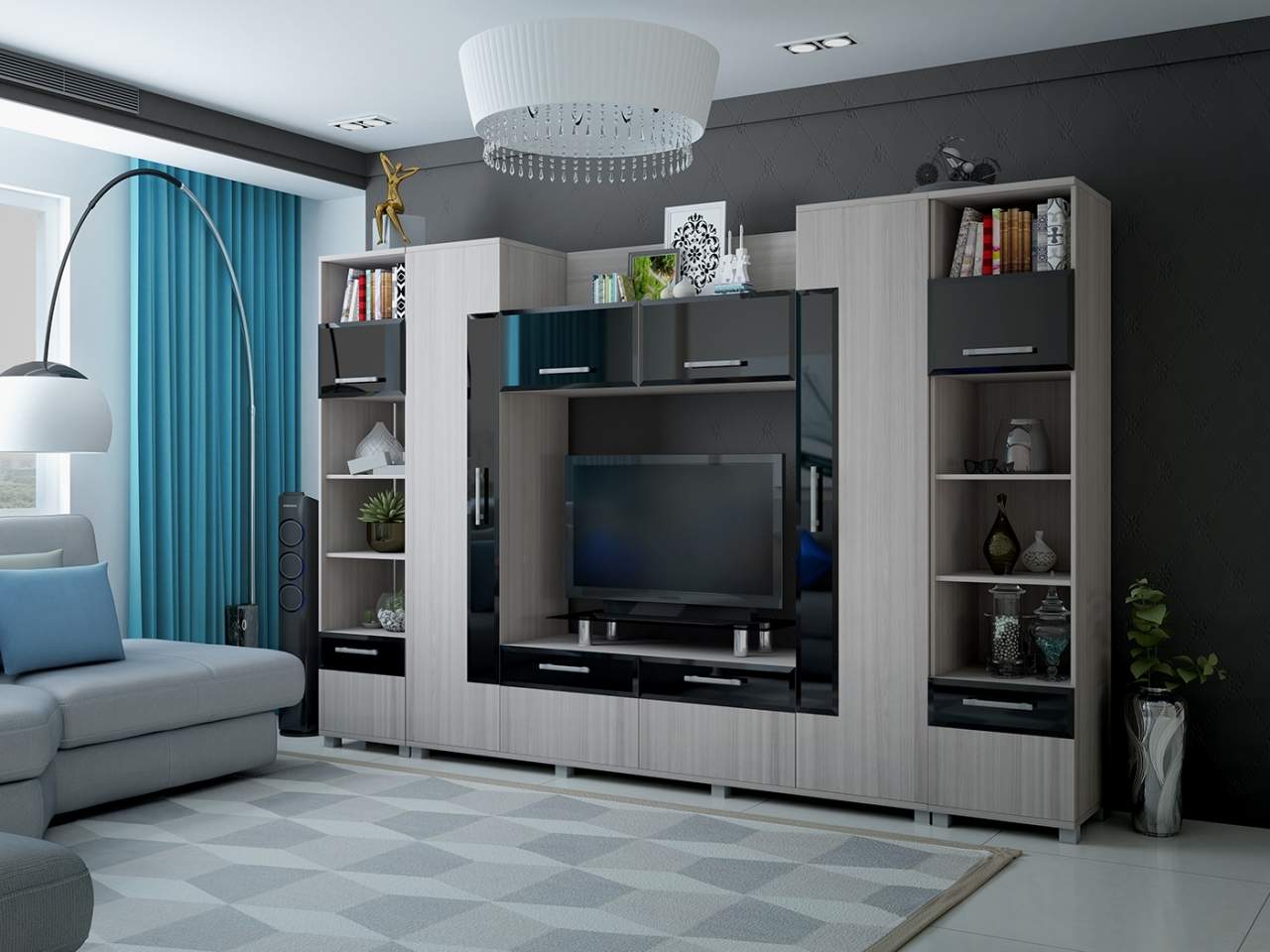 Размер ниши под ТВ: 1200 х 830 мм.
