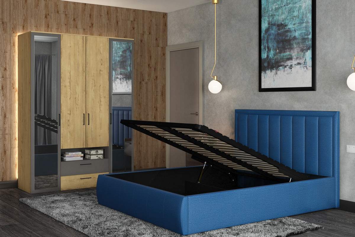 Спальное место кровати: 1600х2000 мм. Просторная двуспальная интерьерная кровать Нью-2 с ящиком легко впишется в спальню с современным дизайном. Кровать оснащена ортопедическим основанием и подъемным механизмом. Изготовлена из качественных и экологически чистых материалов. Кровать Нью-2 с ящиком оборудована высоким, мягким изголовьем и большим ящиком для постельного белья. Прекрасная современная кровать подарит Вам полноценный здоровый сон. Изделие изготовлено из ЛДСП.
