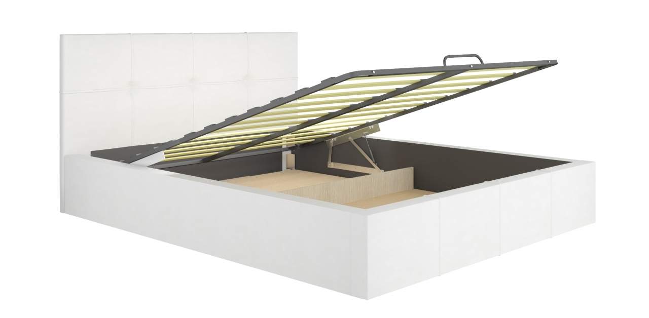 Спальное место: 1600х2000 мм. Ортопедическое основание входит в комплектацию. Кровать оснащена подъемным механизмом и вместительными ящиками. Матрас в комплектацию кровати не входит.