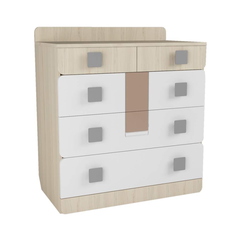 Комод Луиза из коллекции мебели для детской "Луиза " оборудован 5 выдвижными ящиками разного объема. Фасады декорированы цветными вставками и фрезеровкой.Отличная модель,которая украсит комнату ребенка. наведем порядок в детской вместе с комодом Луиза . Материал корпуса: ЛДСП 16 мм. Материал фасадов: ЛДСП 16 мм, МДФ 16 мм, пленка "глянец". Кромка ПВХ 0,4 мм, 2 мм. Декоративные элементы: МДФ 3 мм, пленка "глянец". Фурнитура: направляющие ящиков шариковые полного выдвижения, ручки пластиковые.