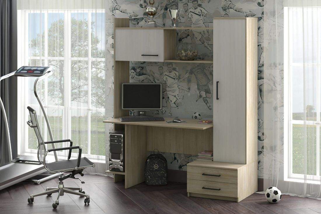 Компьютерный стол Шагус-16 - это современный, функциональный, рабочий стол с надстройкой. Стол оборудован полкой под системный блок, двумя выдвижными ящиками, однодверным шкафом с полками. Надстройка включает в себя нишу с дверкой и открытую полку. Замечательный компьютерный стол Шагус-16 с успехом разместит всю необходимую технику и письменные принадлежности, он будет служить Вам долгое время. Изготовлен из экологически чистых материалов.