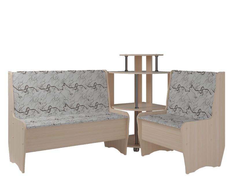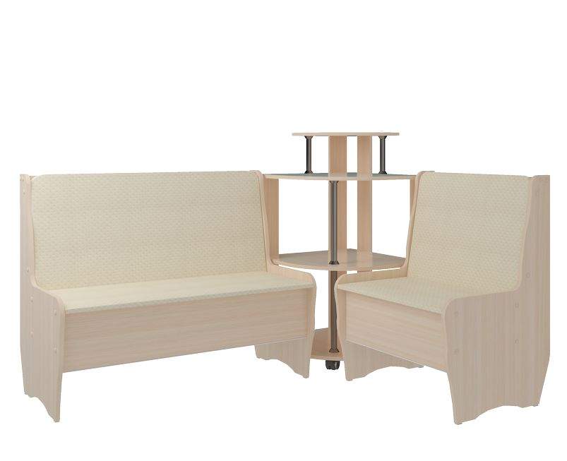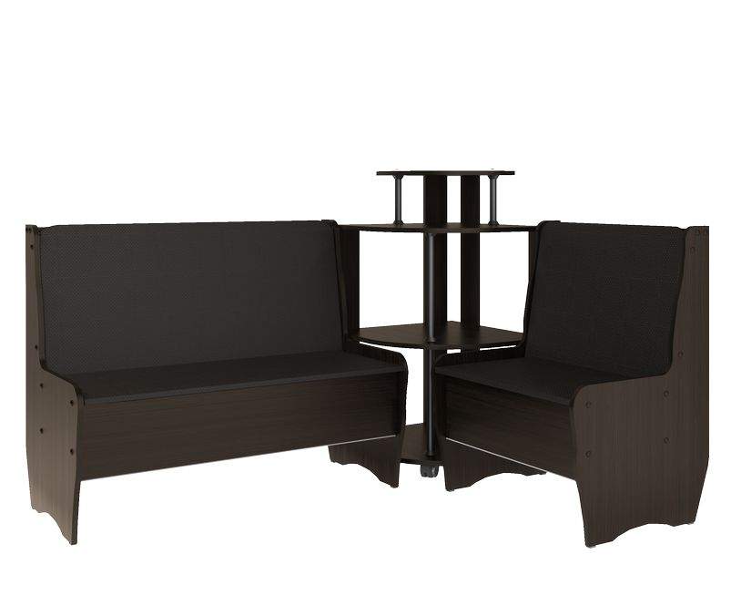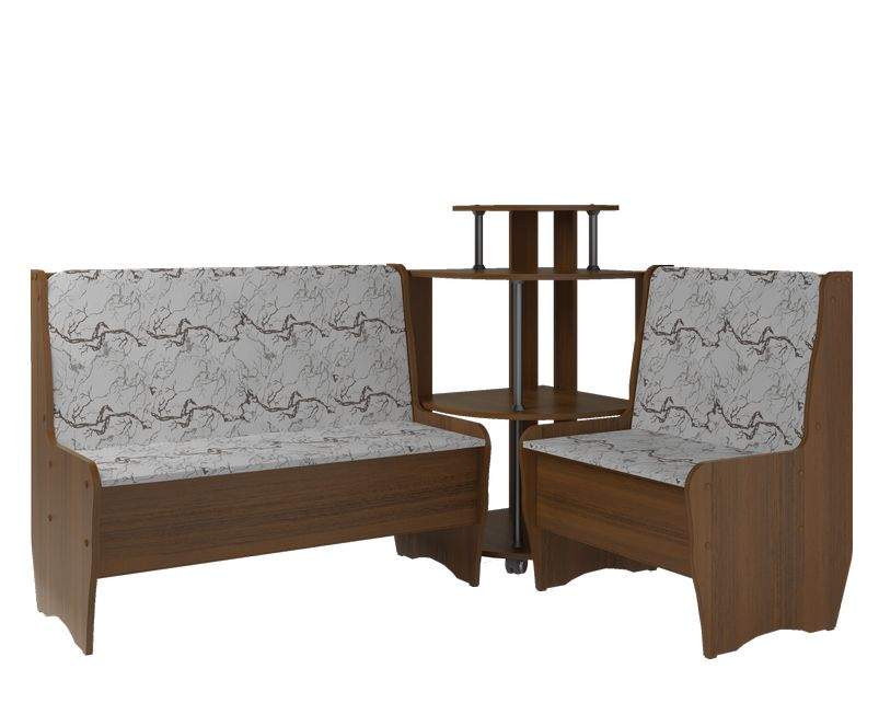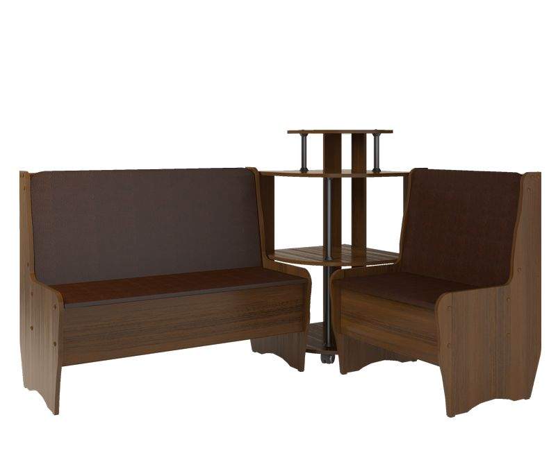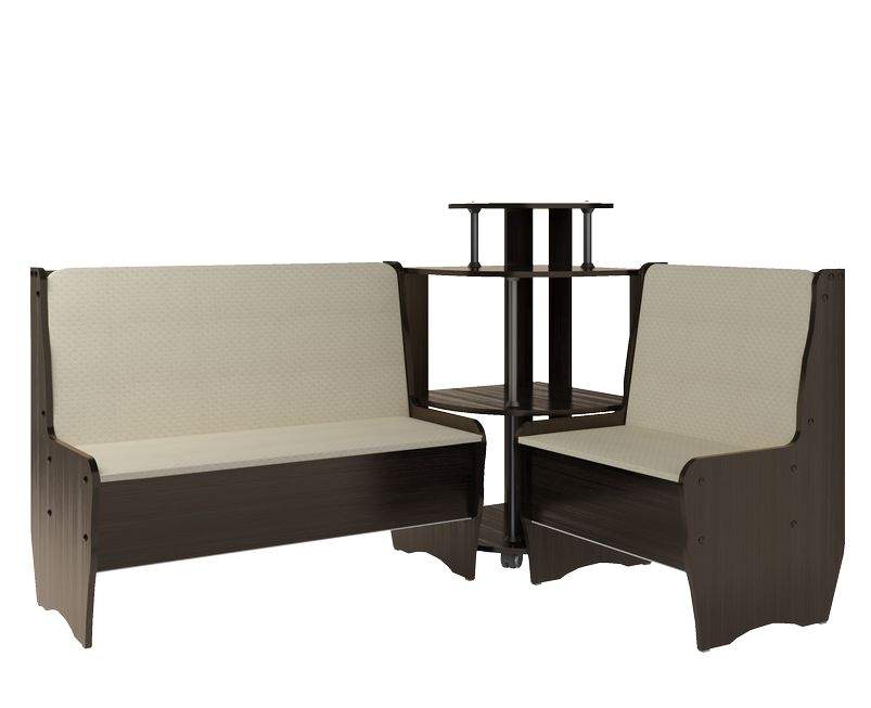 Кухонный уголок Маргарита разработан с учётом пожеланий наших покупателей. Его отличают стильный дизайн, универсальность и качественное исполнение. Корпус кухонного уголка «Маргарита» выполнен из ламинированного ДСП с обработкой кромок ПВХ. Обивка мягких элементов – кож.зам. Под сидением предусмотрена ниша для хранения. Комплект состоит из двух скамей и углового сектора. Угловой элемент выполнен в форме этажерки с полками. В производстве используются экологически-чистые материалы . Этот кухонный уголок Маргарита отлично дополнит стильный интерьер Вашего дома. Под скамейками есть ящик.