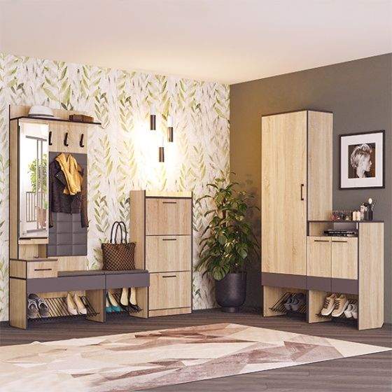 Прихожая Элоиза - это современный набор мебели для Вашей прихожей. В наборе есть все необходимое для того, чтобы комфортно хранить одежду и обувь. В состав прихожей Элоиза входит шкаф для одежды, шкаф с зеркалом, тумба под обувь, вешалка навесная, две тумбы под обувь с мягким сиденьем. Прихожая идеально подойдет для любого помещения и будет служить Вам долгое время. Изготовлена из качественного и экологически чистого материала.