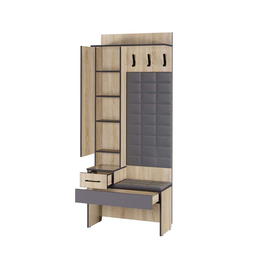 Комплект состоит из:Прихожая Элоиза П-1 (800х350х2000 мм), Тумба под обувь (600х253х1255 мм), Шкаф 1 дверный (600х355х2000 мм), Тумба с дверцами (600х353х960 мм), Тумба Элоиза ТБ-1 (500х350х480 мм), Сетка для обуви 500 мм, Сетка для обуви 600 м -2шт., Сетка для обуви 800 мм .
