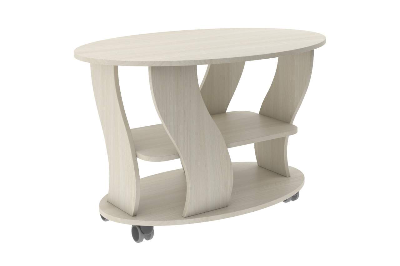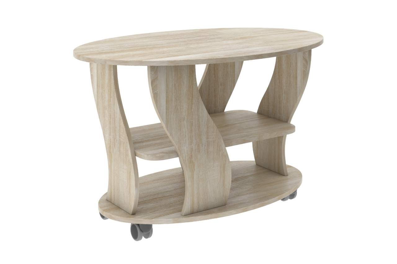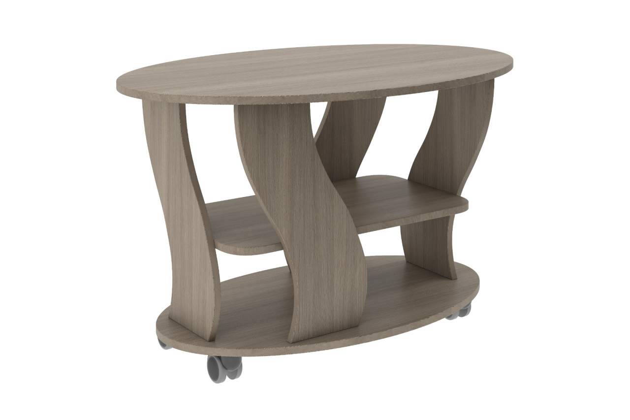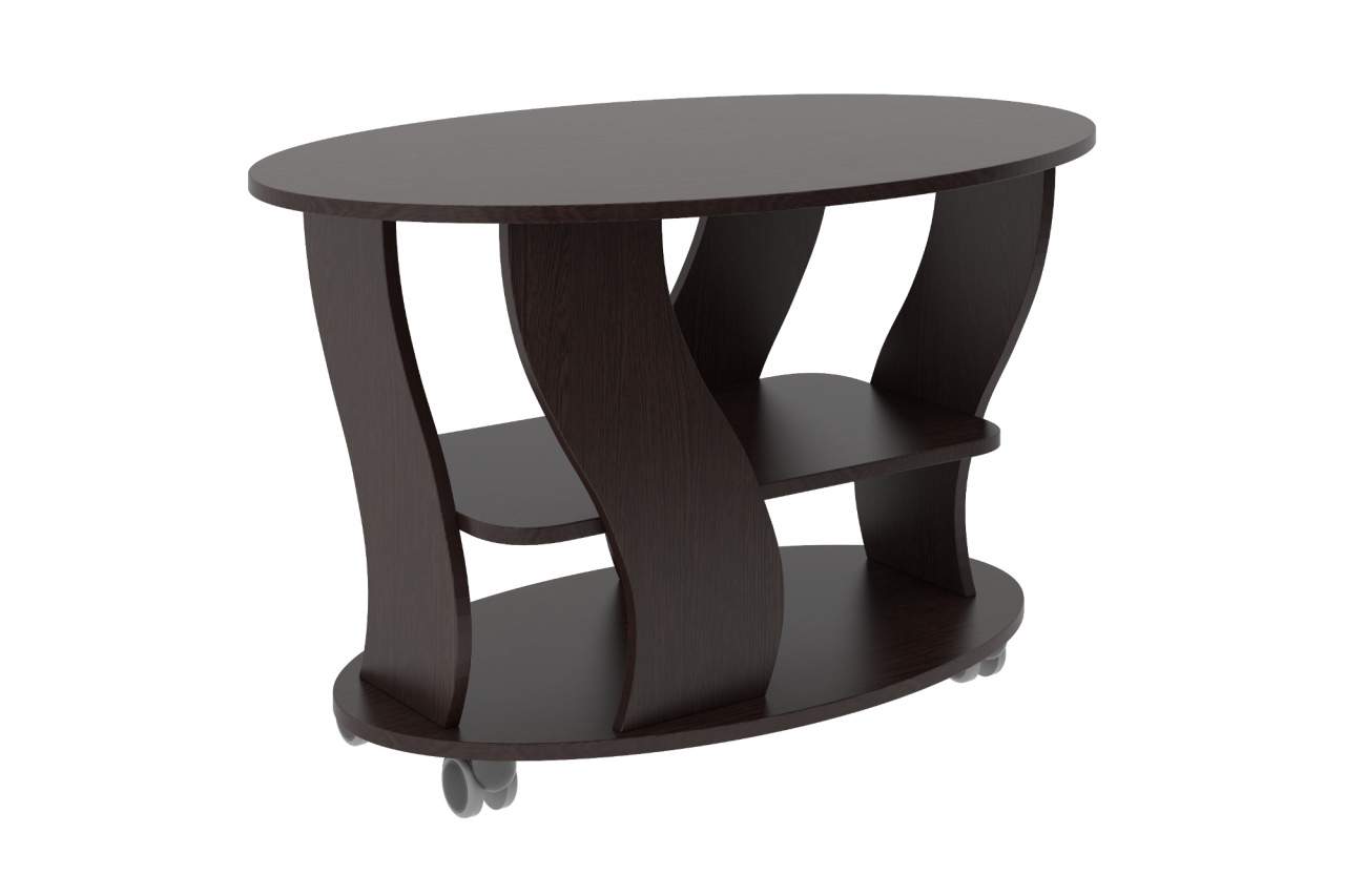 Журнальный столик Брюс - это отличная модель столика для гостиной. Особенность столика состоит в наличии колесиков, это значит, что его можно легко передвигать в нужное место. Снизу есть дополнительная полочка. Столешница имеет овальную форму. Столик отлично подойдет для чаепития.