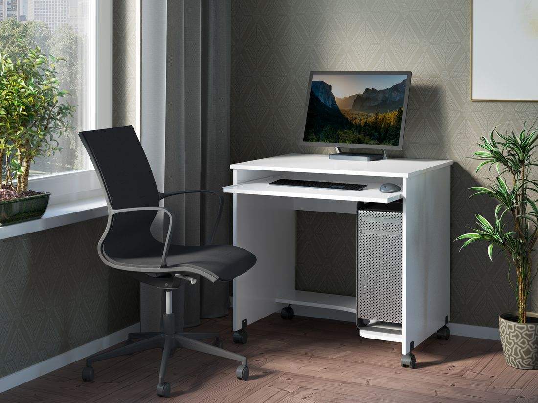Стол компьютерный Бест - это современный, небольшой стол для Вашего кабинета. Благодаря своим компактным размерам стол не занимает много места и с легкостью вписывается в любой интерьер. Стол оборудован выдвижной панелью для клавиатуры и нижней полкой, он установлен на колеса, поэтому легко переставляется в нужное место. Замечательный небольшой компьютерный стол Бест будет служить Вам долгое время. Изготовлен из качественнызх материалов.