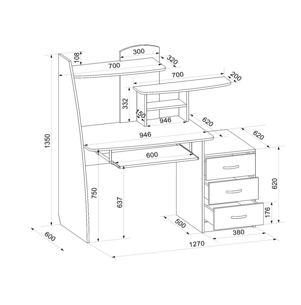 Стол изготовлен из ЛДСП. В изделии используются качественные материалы и современная, надежная фурнитура. Мебель экологически безопасна и имеет все необходимые сертификаты. Стол оборудован выдвижной полкой под клавиатуру, оснащен различными полочками и тумбой с тремя ящиками. Стильный, элегантный, современный компьютерный стол "Шагус-8" создаст для вас по настоящему комфортное место для учебы, работы или досуга. Стол поможет с максимальным комфортом разместить под рукой все, что нужно для удобства. Компьютерный стол станет украшением любой комнаты и будет служить вам долгие годы.
