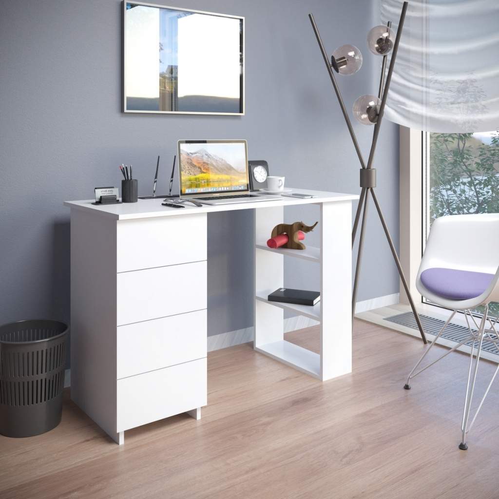Стол письменный Бруно - это функциональный, современный компьютерный стол, который подойдет для любой комнаты. Его можно поставить в детскую комнату и использовать, как рабочий стол для ребенка, он отлично подойдет для рабочего кабинета, как компьютерный стол для работы, в спальне его можно использовать, как туалетный столик, если добавить к нему зеркало. Данный стол оборудован четырьмя выдвижными, вместительными ящиками на роликовых составляющих, которые подходят для хранения документов, различных письменных принадлежностей. С права расположены открытые полки для различных необходимых вещей. Универсальный Стол письменный Бруно подходит как для дома, так и для офиса. Изготовлен из качественного ЛДСП.