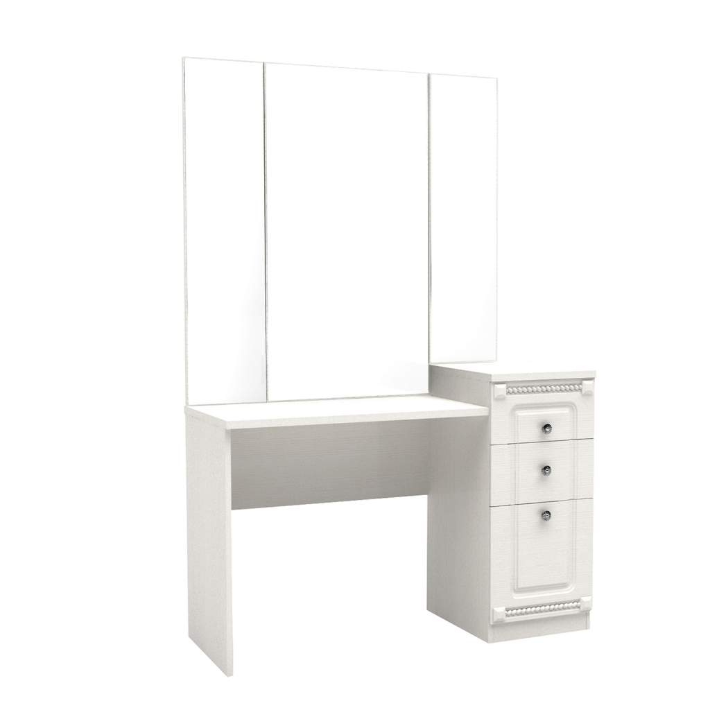 Трельяж Александра - это важный атрибут в каждой спальне. Трельяж Александра выпускается в красивом цвете Бодега белая, благодаря этому он идеально подходит для любого интерьера. Данный трельяж оснащен тумбой с двумя ящиками и закрытой нишей. Трельяж изготавливается из качественных и экологически чистых материалов. Замечательный трельяж для Вашей спальни.