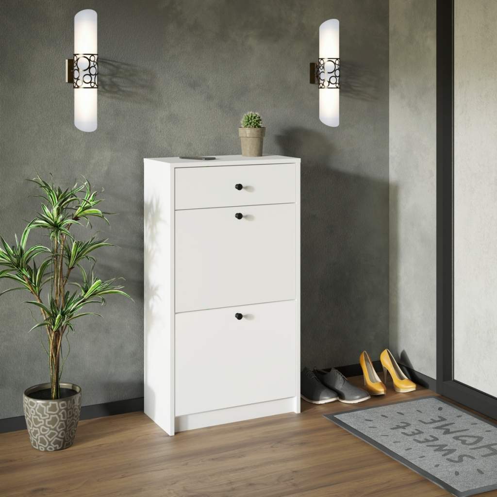 Тумба для обуви ТБ-1 Вайс - это качественная, современная тумба дл обуви. Благодаря своим компактным размерам, она не занимает много места, тумба идеально подойдет для небольшой прихожей. Конструкция тумбы состоит из двух вместительных полок, выполненных в виде откидных дверок и одним выдвижным ящиком для необходимых вещей. Изготовлена из ЛДСП.