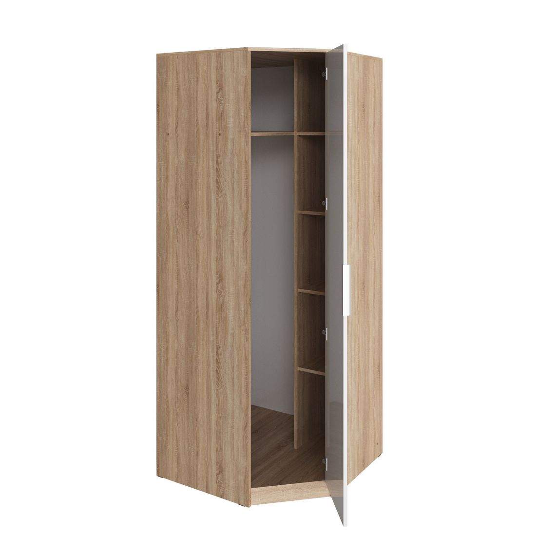 Шкаф угловой Норд - это вместительный, функциональный шкаф, выполненный в современном стиле. Шкаф можно поставить в гостиную, спальню, прихожую, он легко вписывается в любой современный интерьер. За распашной дверкой шкафа находятся две секции. Слева секция с о штангой для плечиков и антресольной полкой, справа секция с полками для вещей. Прекрасный угловой шкаф Норд будет содержать Ваши вещи в чистоте и порядке. Изготовлен из экологически чистых материалов.