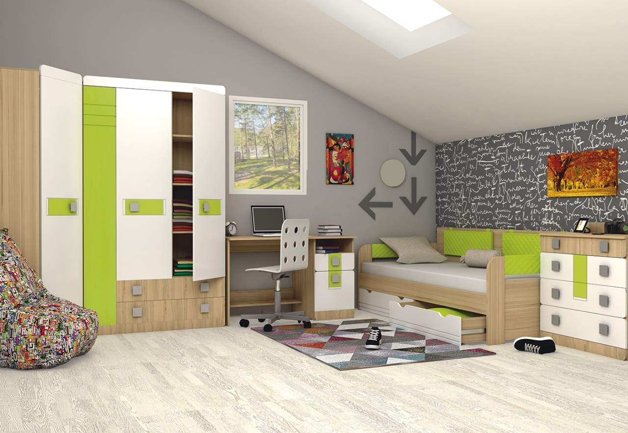 Мебель для детей «Луиза», выполненная в цвете «Лайм» подойдет как для младших, так и старших школьников. Корпуса детской «Луиза» выполнены из ЛДСП толщиной 16 и 22 мм. Торцы обработаны кромкой ПВХ. Фасады Детскаявыполнены из плиты МДФ, покрытых глянцевой пленкой белого цвета. Декоративные элементы на фасадах выполнены из МДФ с глянцевой пленкой ПВХ, по периметру подчеркнуты фрезеровкой. Все петли на фасадах с доводчиками. Направляющие на выкатных ящиках - шариковые, полного выдвижения. Модули, словно детали взрослого конструктора, умело выстраиваются в оригинальные, многофункциональные композиции неограниченной вместимости. Не стоит забывать и о тех компонентах, которые смогут обезопасить Вашего ребёнка, в детской мебели «Луиза»- это мягкие элементы, скруглённые углы и пластиковые ручки.