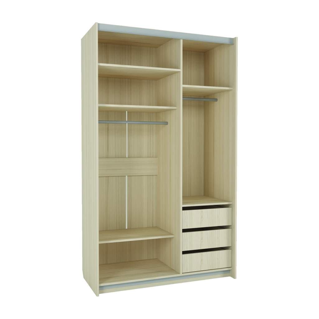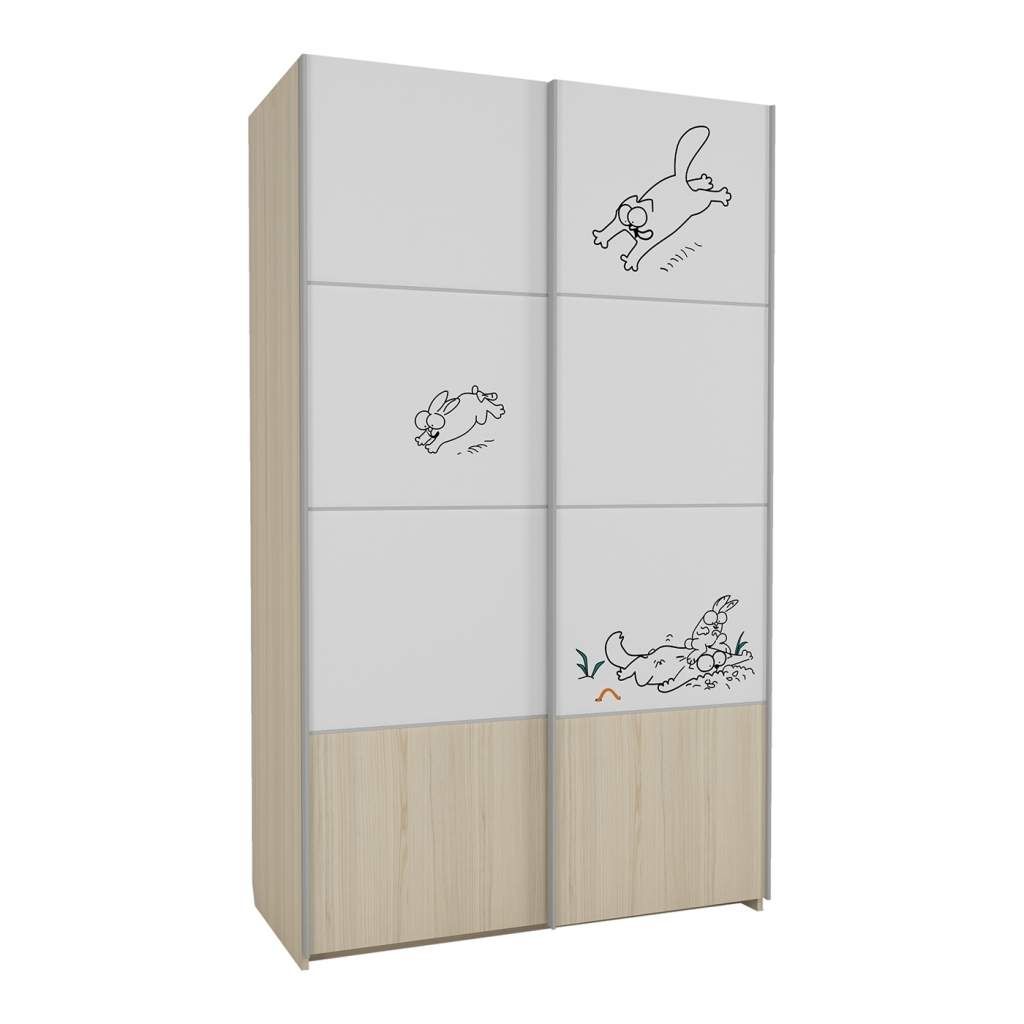 Шкаф-купе Киса Ш-1, это большой двухстворчатый шкаф купе с выдвижными ящиками. Корпус изготовлен из ЛДСП, фасады МДФ. На белых фасадах красуется изображение Кисы.Шкаф-купе разделен на две секции. Одна из секций комплектуется 3 полками и штангой для вешалок. Вторая секция имеет 2 полки, штангу и 3 выдвижных ящика для белья. Кромка ПВХ 0,4 мм. Фурнитура: направляющие ящиков шариковые полного выдвижения.
