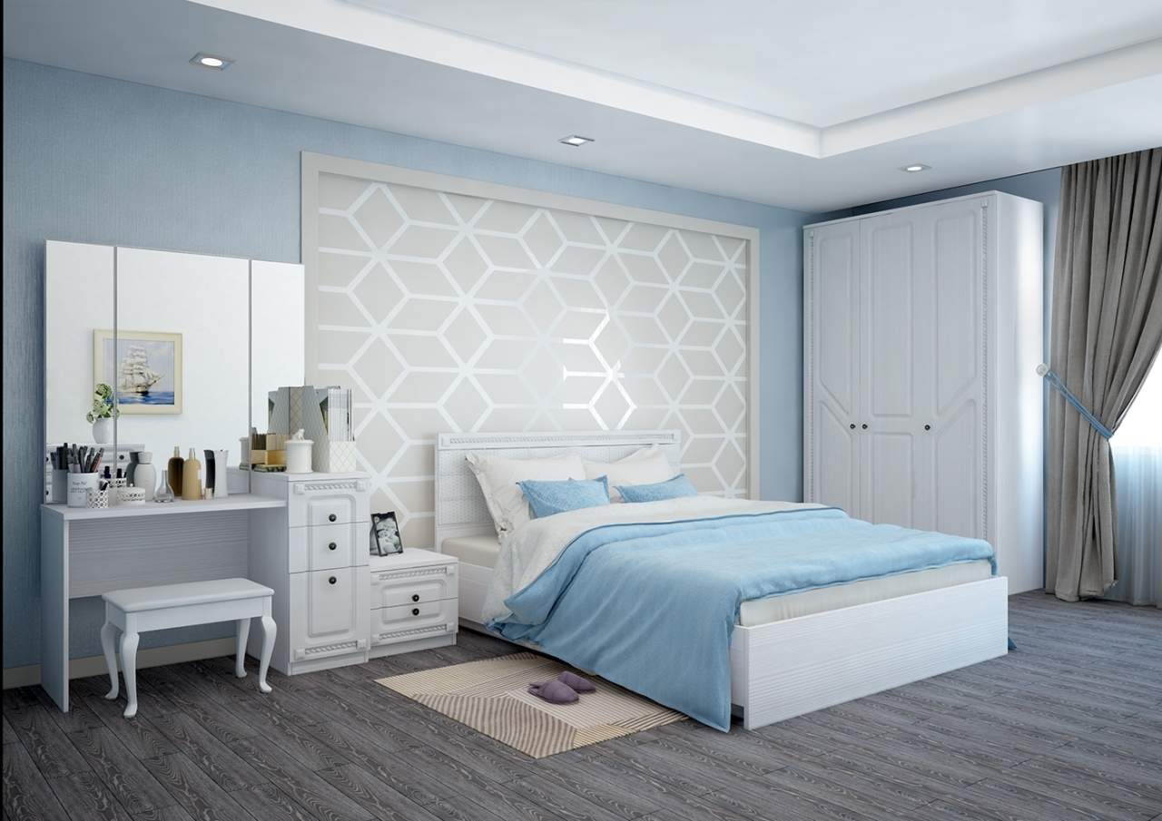 Спальня Александра - это набор модульной мебели, выполненный в современном стиле. Его внешний вид и качество сполнения отвечают самому изысканному вкусу. Гарнитур выполнен в белом цвете Бодега белая. Изготавливается из качественных и экологически чистых материалов. Комплектуется широкой комфортной кроватью с подъемным механизмом, двумя прикроватными тумбами с ящиками, большим 3-х дверным шкафом, красивым большим трельяжом. Прекрасный набор мебели для Вашей спальни будет радовать Вас долгие годы.